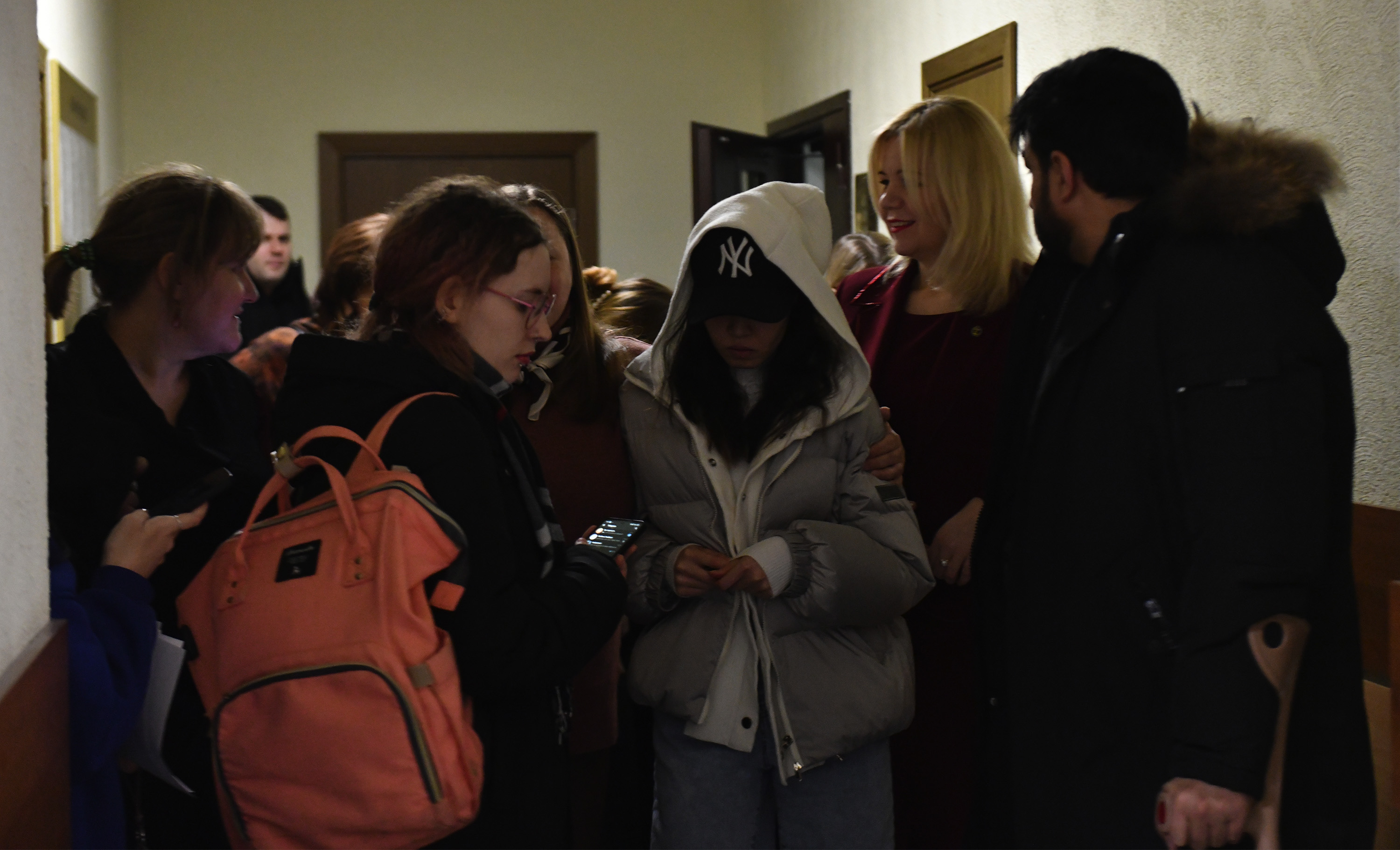 На заседания суда обвиняемых из ЦВСИГ привозили на белом микроавтобусе сотрудники ФСБ — некоторые в форме пограничной службы, некоторые в штатском. Они запрещали подсудимым общаться со слушателями и журналистами, хотя подписка о невыезде не предполагает такого запрета.