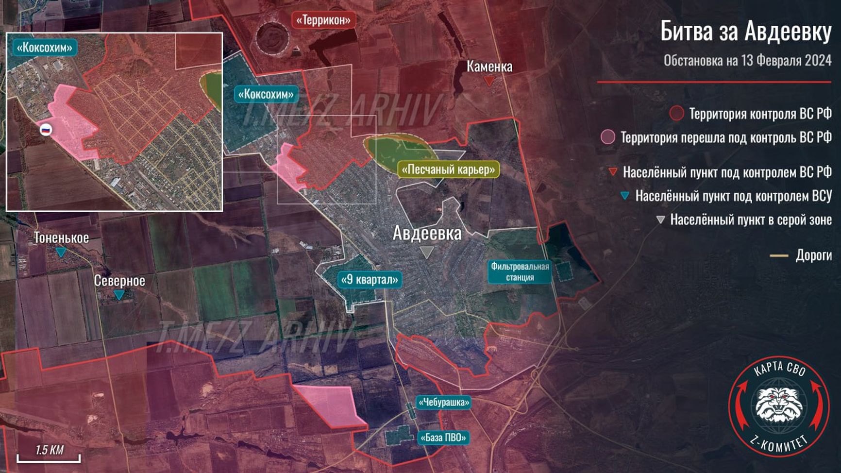 Ситуация в Авдеевке по версии Telegram-канала «Z комитет + карта СВО»