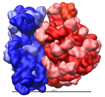 Если посмотреть на рибосомную РНК как на такой трехмерный пазл (см. рис.), то цепочка РНК складывается в клубок, представляющий из себя основу субъединицы рибосомы за счет нескольких типов взаимодействий. Во-первых, за счет уотсон-криковских пар между азотистыми основаниями, приводящих к образованию коротеньких двуспиральных участков-шпилек. Это двуспиральные фрагменты одной нити, сложенной пополам, т. е. с одной стороны эта двойная спираль заканчивается петлей. Следующий механизм — это солевые мостики, разные положительно заряженные ионы в разных местах рибосомы. Это могут быть как неорганические ионы (магний, калий и цинк), так и простые органические полиамины, а также сложные положительно заряженные ионы, т. е. молекулы рибосомных белков. Рибосомные белки как раз положительно заряжены — в отличие от типичных белков — большинства белков клетки. Это позволяет им компенсировать отрицательный заряд рибосомной РНК. Вот эти вот положительно заряженные противоионы позволяют отрицательно заряженной РНК преодолеть электростатическое отталкивание разных частей молекул друг от друга и свернуться компактно.