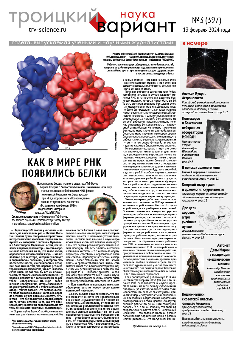ТрВ № 3 (397) за 2024 г.: Как в мире РНК появились белки