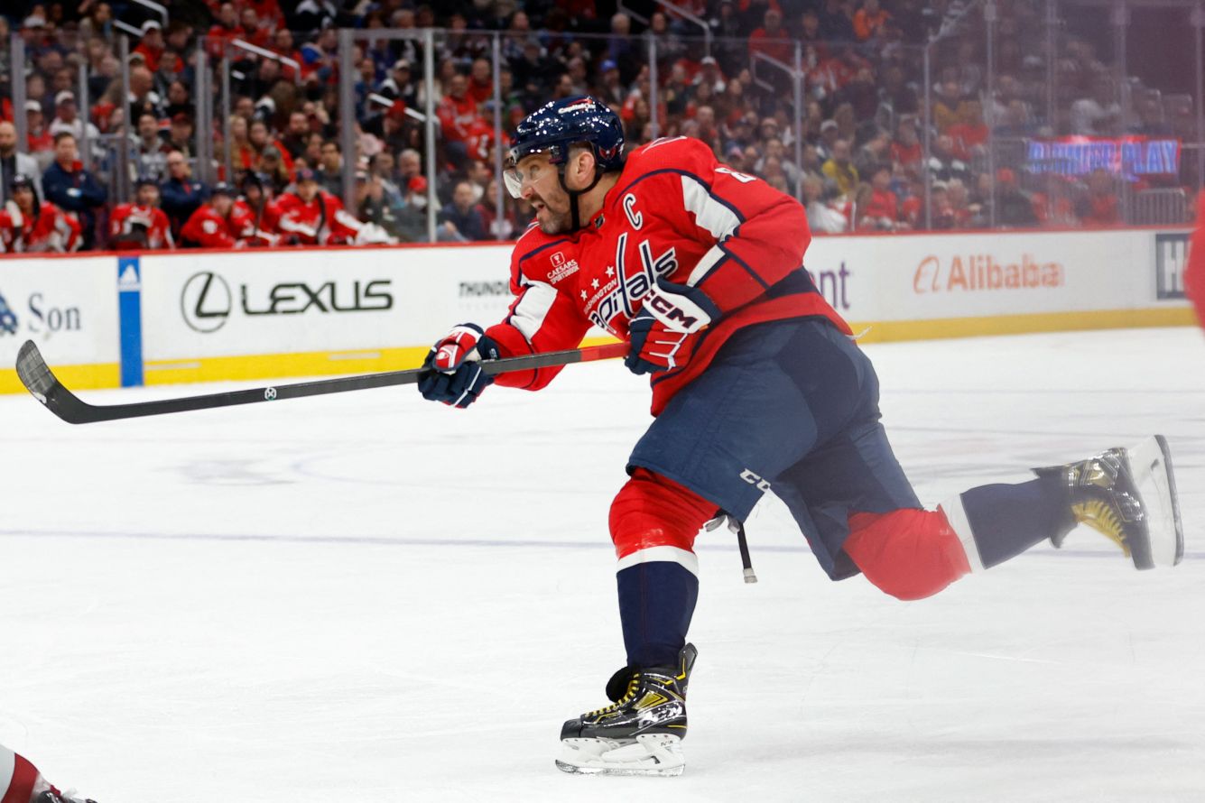 Geoff Burke / USA TODAY / Reuters / Scanpix / LETA Александр Овечкин в матче регулярного чемпионата НХЛ. 13 февраля 2024 года