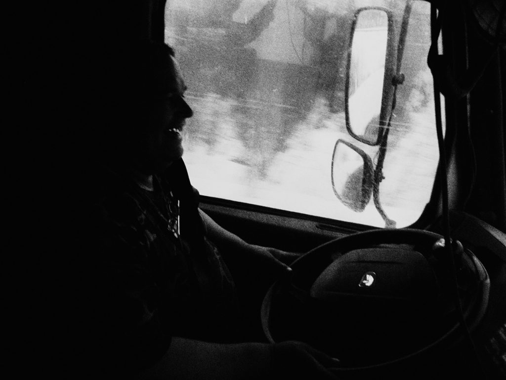 С Ингой мы встречаемся на заправке на окраине одного из городов, через которые проходит ее рейс. Рядом с ТЦ я вижу припаркованную фуру. Инга в бесформенной куртке открывает водительскую дверь и пропускает меня вперед на лесенку: «Залезайте, здесь только так».