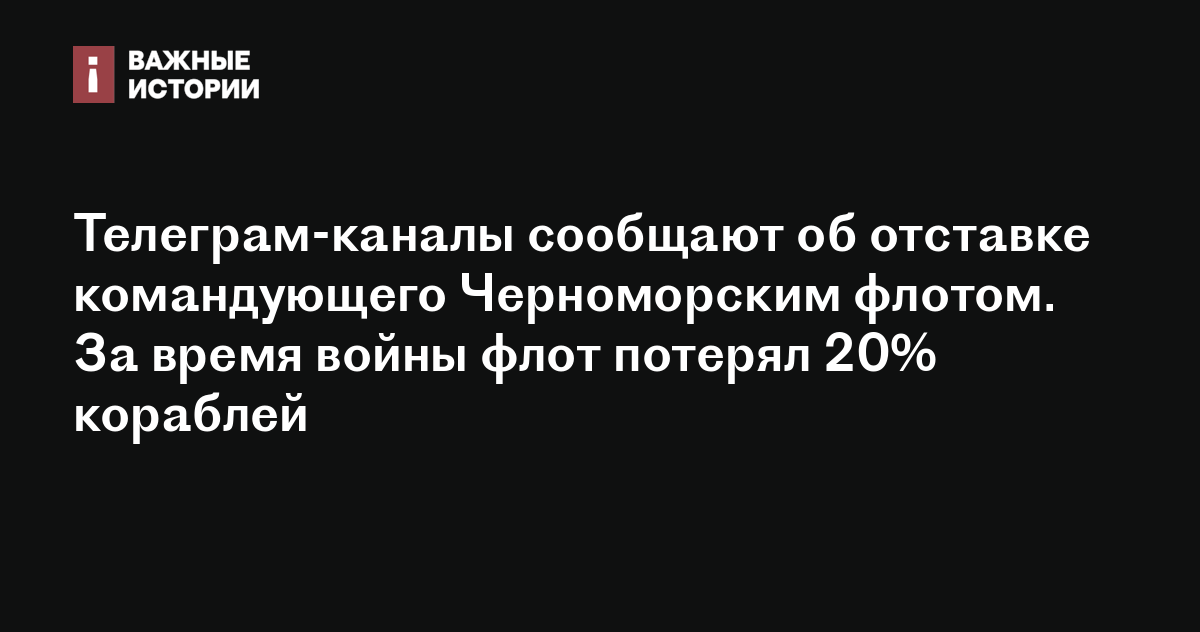 Телеграм-каналы сообщают об отставке командующего Черноморским флотом. За время войны флот потерял 20% кораблей