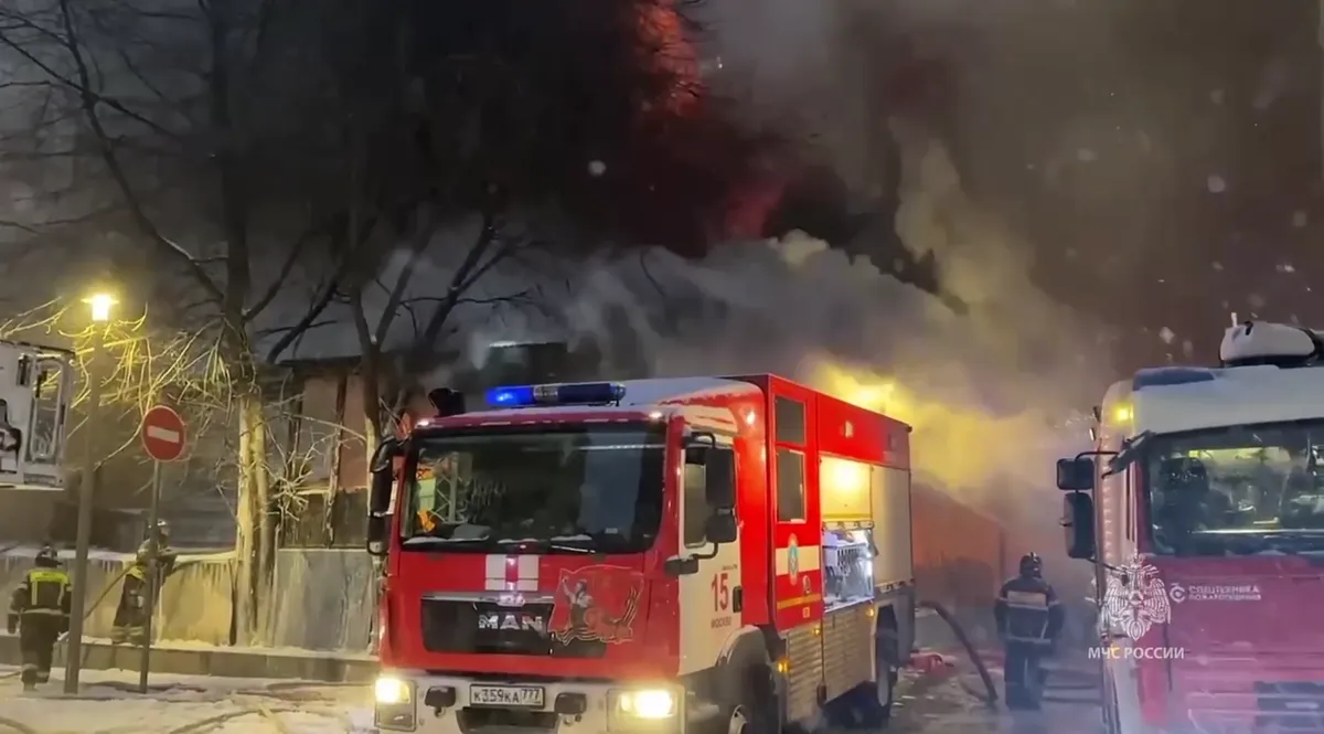 «По уточненной информации, огонь охватил три неэксплуатируемых строения внутри двора. В одном из них частично обрушились конструкции», — говорится в сообщении МЧС.
