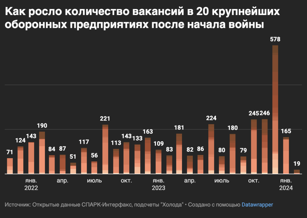 Необходимость выполнять рекордный гособоронзаказ вынудила российские военные предприятия расширять производства и нанимать новых сотрудников. Например, в Омской области всего за два первых месяца 2023 года на предприятия ОПК вышли 1,7 тысячи новых работников, а в Свердловской области за 2023 и 2024 год планируют трудоустроить на предприятия, работающие на войну, почти девять тысяч человек. Эта тенденция актуальна для всей страны, а активный найм продолжается до сих пор.