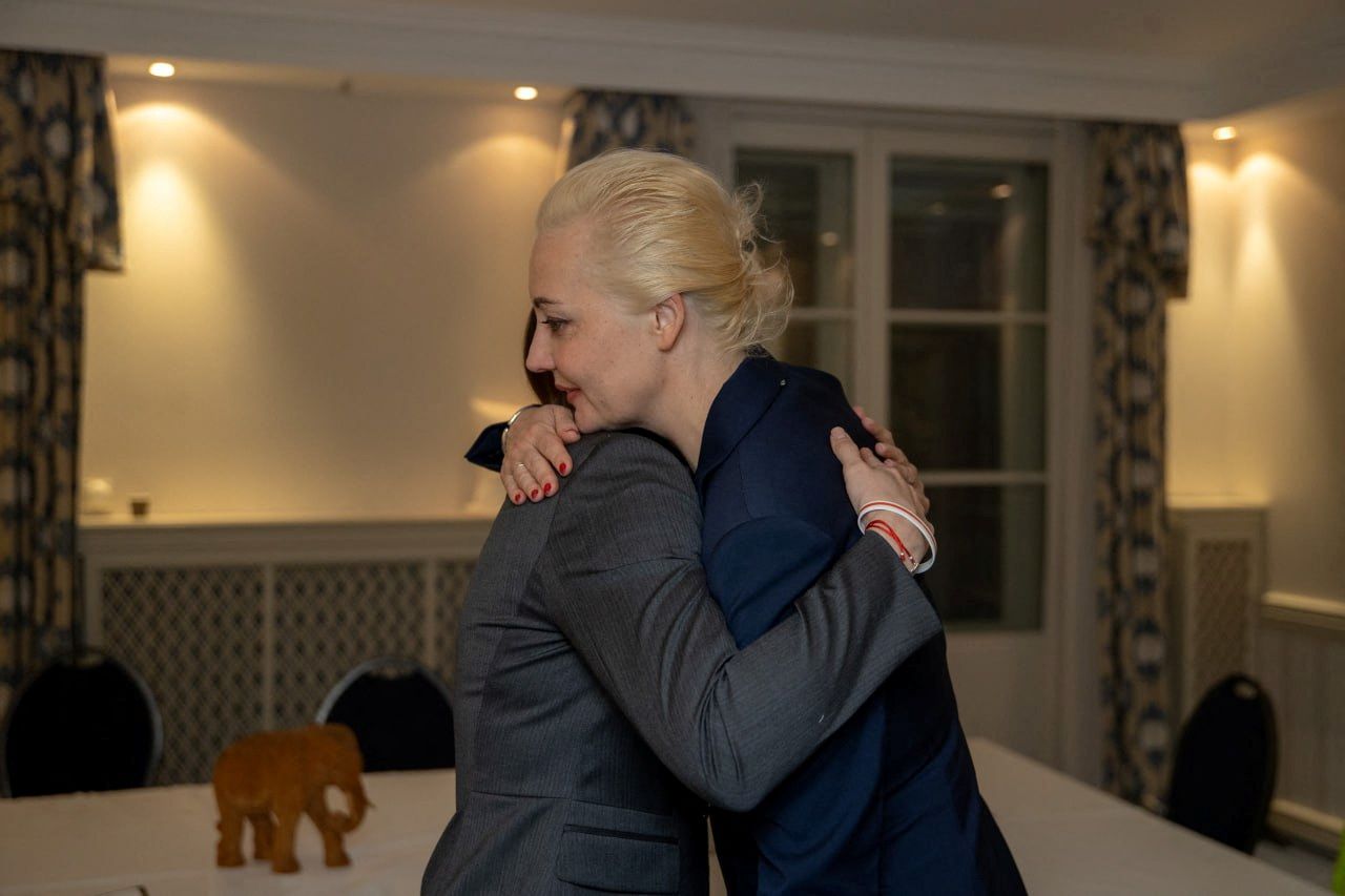 Sviatlana Tsikhanouskaya / Reuters / Scanpix / LETA Жена Алексея Навального Юлия и лидер белорусской оппозиции Светлана Тихановская в Мюнхене на конференции по безопасности, 16 февраля 2024 года