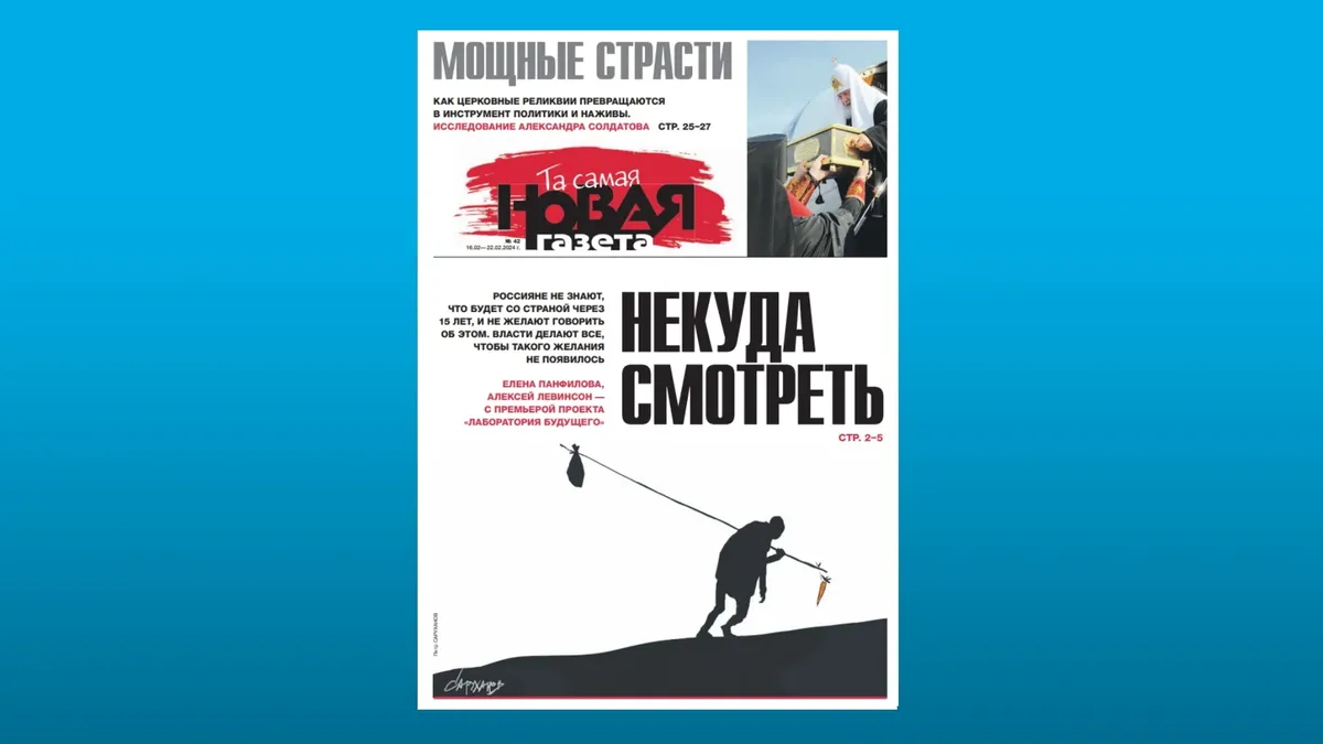 Дата16.02.2024Автор«Новая газета»ИсточникНовая ГазетаСохранённая копияInternet ArchiveOriginal MaterialShow translation«Та самая "Новая газета"» в PDF. 42-й номерПочему россияне не думают о будущем, зачем власть «давит» культуру, что собой представляет мировой рынок мощей, и — о «китайском сезоне» в России