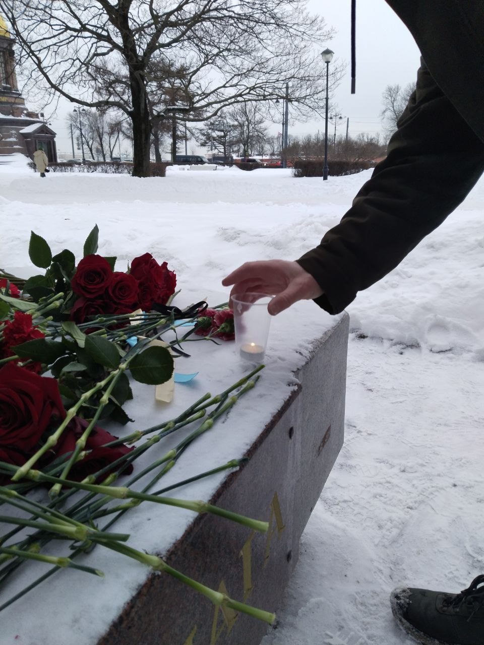 — Я не мог не прийти. И тот символ, который как никогда подходит этим событиям с максимально печальным акцентом, поэтому я здесь. Тут есть долг. Если всё время жить в страхе, то тогда будет только хуже. Алексей был для меня человеком, на которого ты равняешься. Когда видишь, что он идет на такие риски, думаешь, и я буду делать хоть что-то. Он вдохновлял. [Сегодня был] шок, печаль, немного тряслись руки.