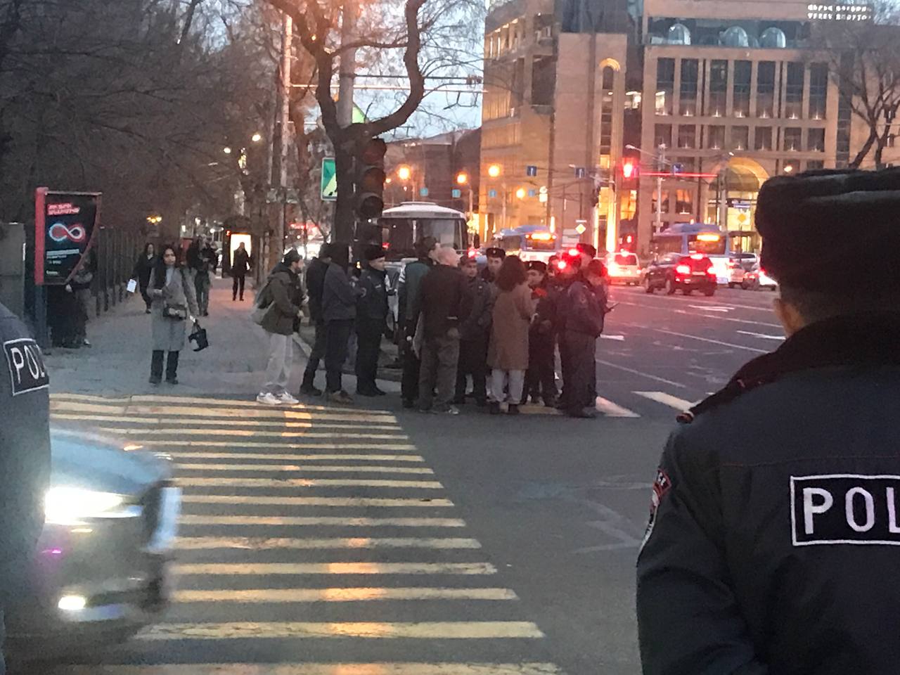В Ереване полиция запретила местным жителям собираться у российского консульства, назвав это несанкционированным митингом. Желающие почтить память Навального собрались через дорогу от здания.