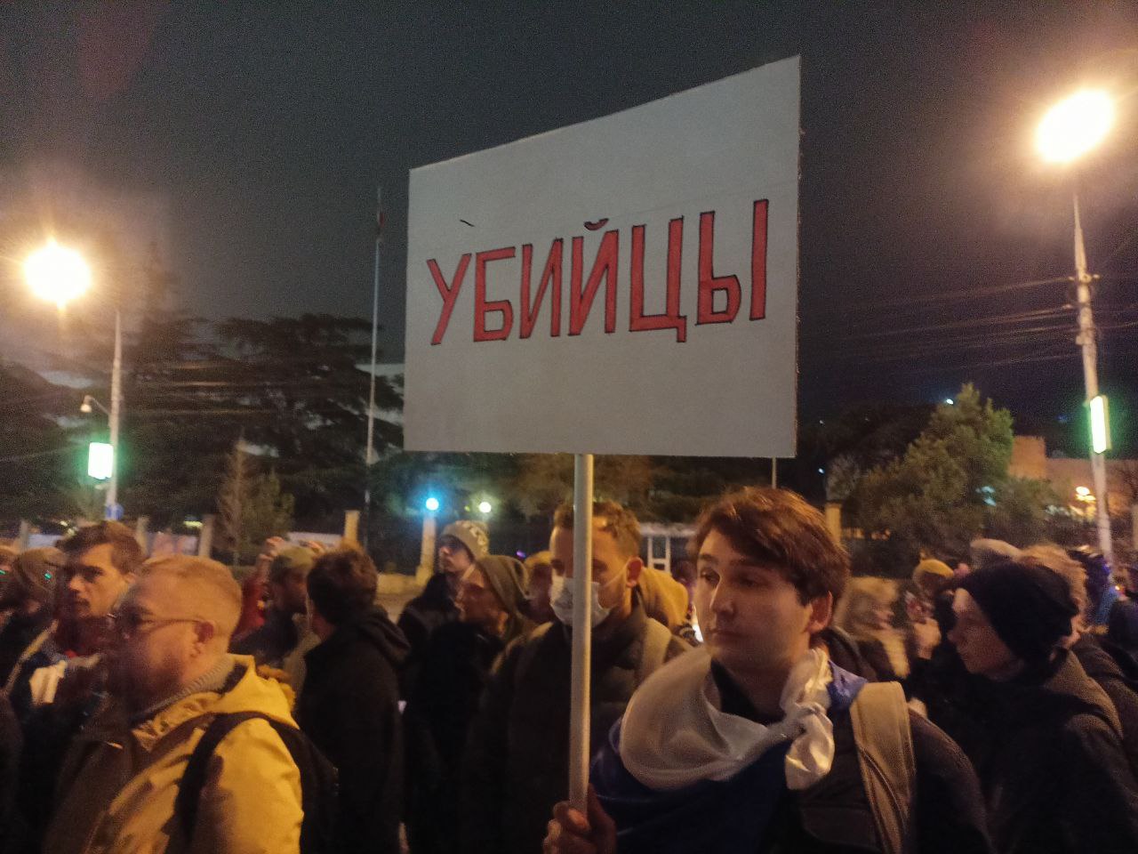 В Тбилиси акция прошла у секции интересов России при посольстве Швейцарии. Люди вышли с плакатами "Убийцы", и словами, переданными жителями России, сообщает корреспондент Север.Реалии. Они скандировали: "Это не смерть, это убийство".