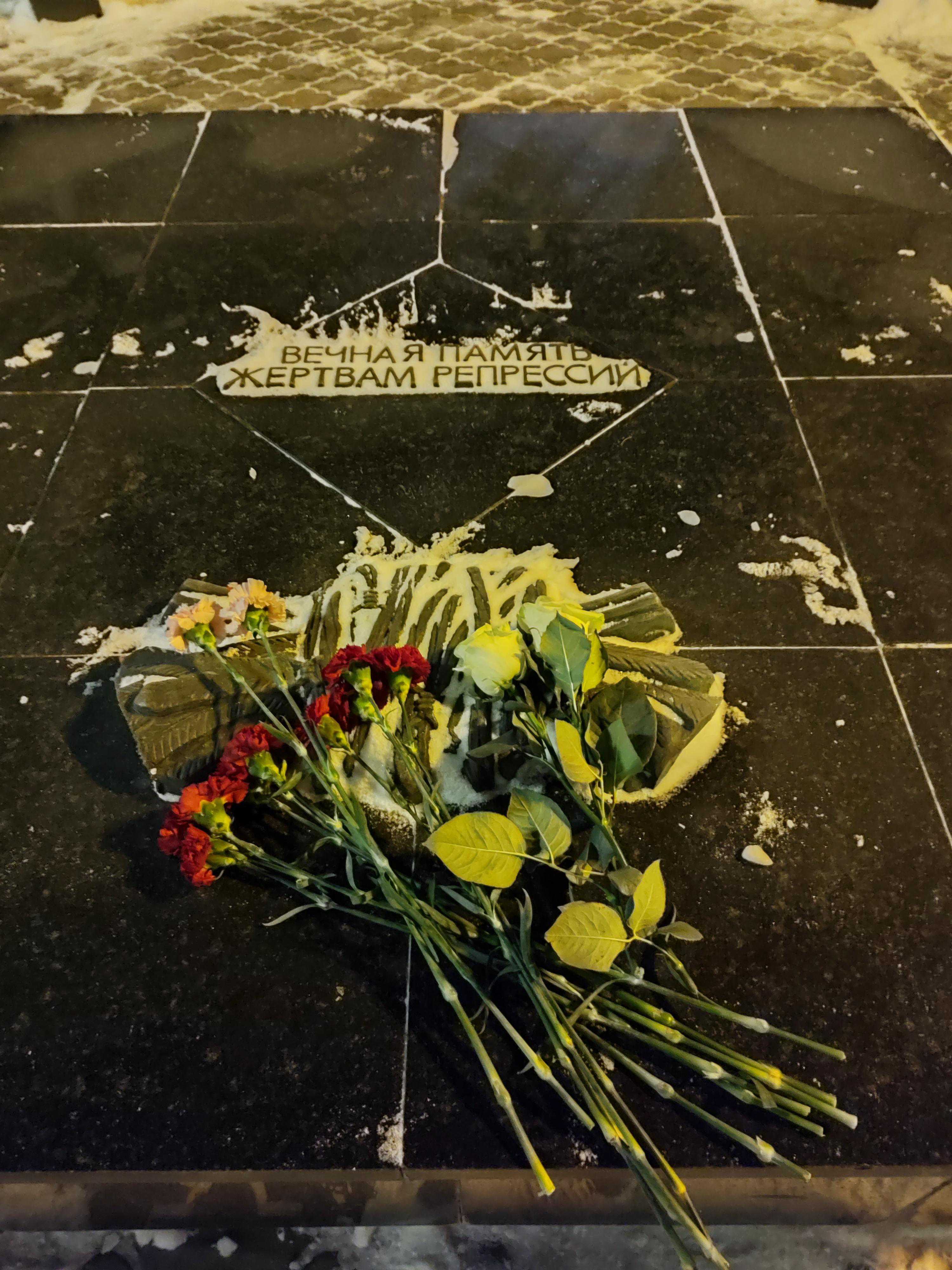 В Петербурге организовали стихийный мемориал в память Навального около памятника жертвам политических репрессий на Воскресенской набережной, сообщил корреспондент Север.Реалии.