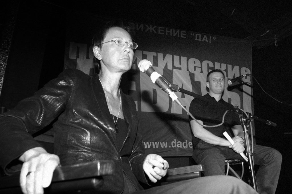 Политическая карьера Алексея Навального началась в нулевых. В 2000 году он вступил в Партию «Яблоко», а в 2006-м — координировал проект «Политические дебаты». На фотографии слева Навальный модерирует дебаты Дмитрия Белыха и Максима Кононенко, справа — Ирины Хакамады и Алексея Чадаева. 2006 год. Фото: Валерий Горохов