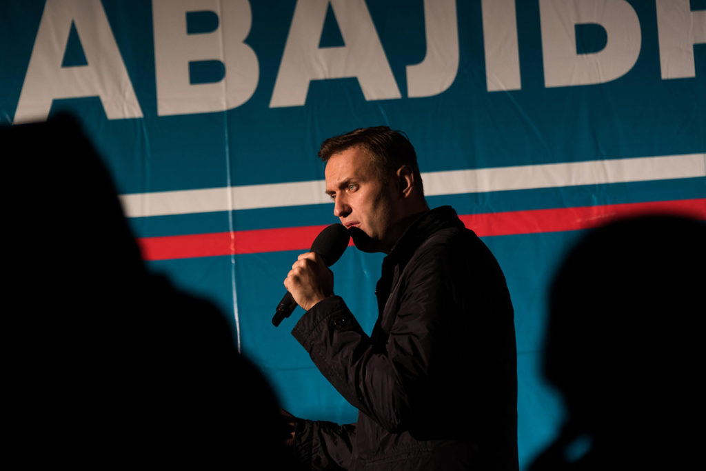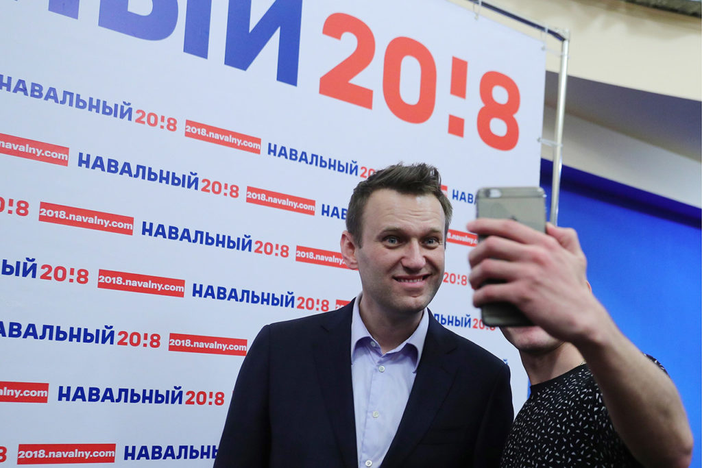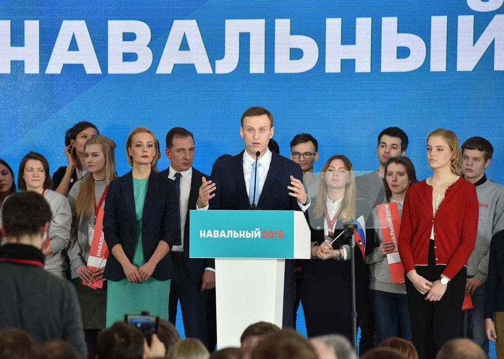 В 2016 году Алексей Навальный объявил, что будет участвовать в выборах на пост президента России, а в 2017-м начал предвыборную кампанию. Фото слева: Навальный выступает в Астрахани, 22 октября 2017 года (Фото: Максим Коротченко / Alamy / Vida Press). Справа — церемония открытия штаба в Иваново, 21 апреля 2017 года. Фото: Владимир Смирнов / ТАСС / Scanpix