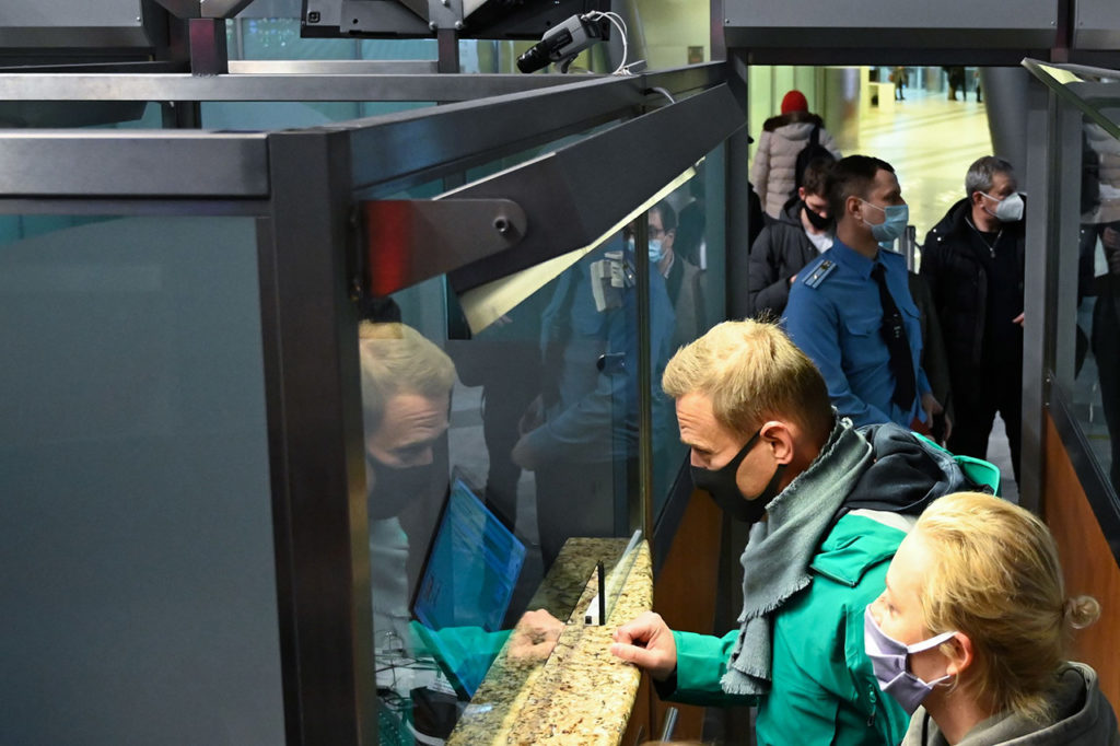 Алексей и Юлия Навальные на паспортном контроле в аэропорту Шереметьево, 17 января 2021 года. Фото: Кирилл Кудрявцев / AFP / Scanpix