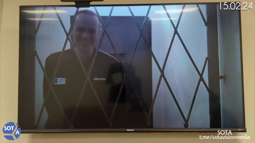 После того как Алексей Навальный оказался в колонии, власти стали предъявлять ему новые обвинения и судить по старым. Навального обвиняли в «оскорбление судьи», «клевете в отношении ветерана», вандализме, расходовании пожертвований. На фото слева Навальный по видеосвязи выступает на апелляции по делу о создании экстремистского сообщества, по которому его приговорили к 19 годам заключения. 26 сентября 2023 года (фото: Татьяна Макеева / AFP / Scanpix). Справа — Навальный в окружении адвокатов на оглашении приговора 4 августа 2023 года (фото: Александр Земляниченко / AP / Scanpix)