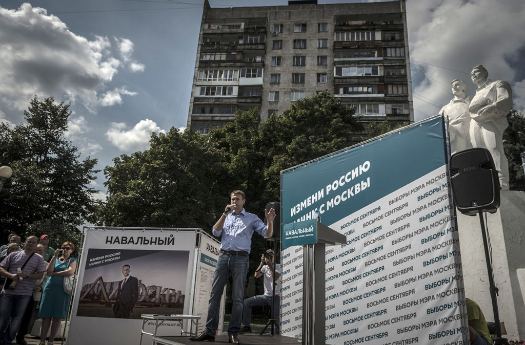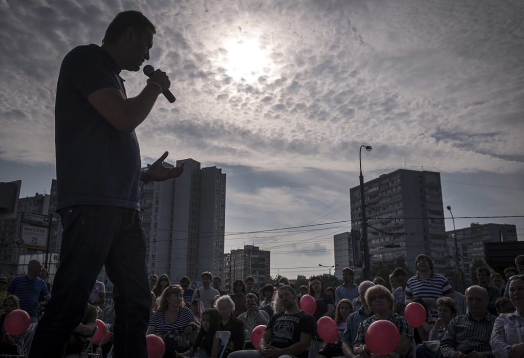 В 2013 году Алексея Навального допустили до участия в выборах мэра Москвы. На фото Навальный выступает перед избирателями 2 августа 2013 года. Фото: Сергей Пономарев / Sipa / Shutterstock / Vida Press