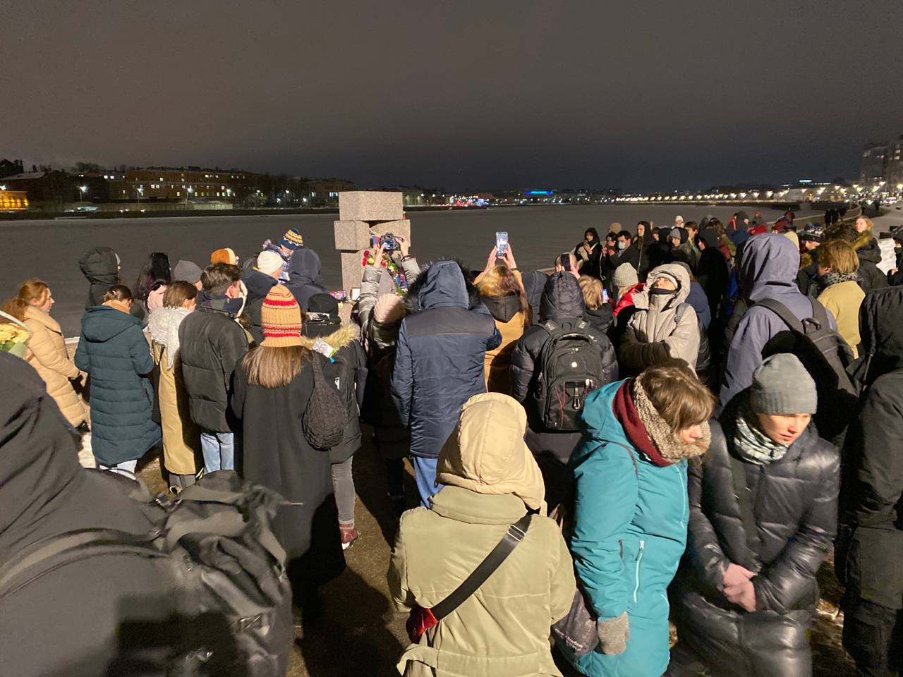 На акциях в память об Алексее Навальном в Петербурге задержали не менее 69 человек, сообщает правозащитный проект «ОВД-Инфо».