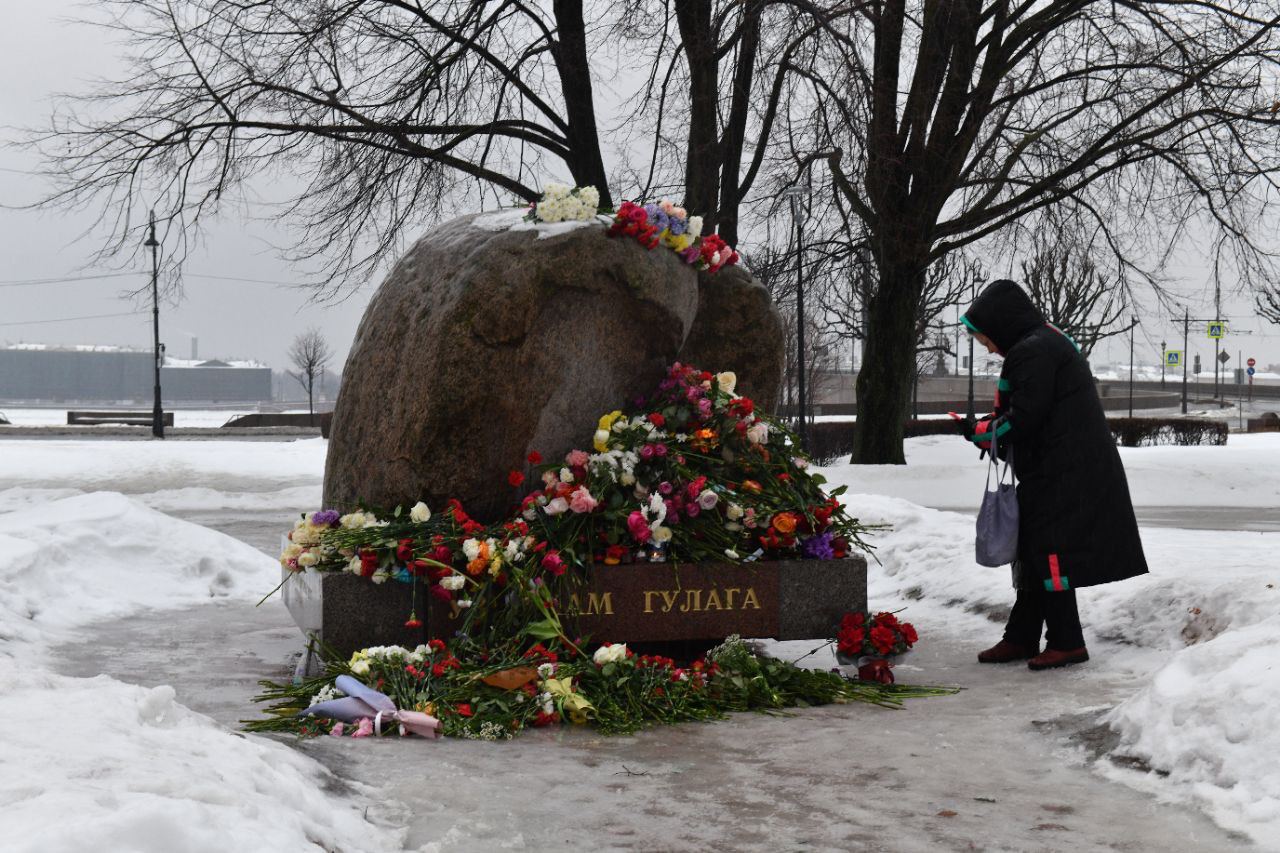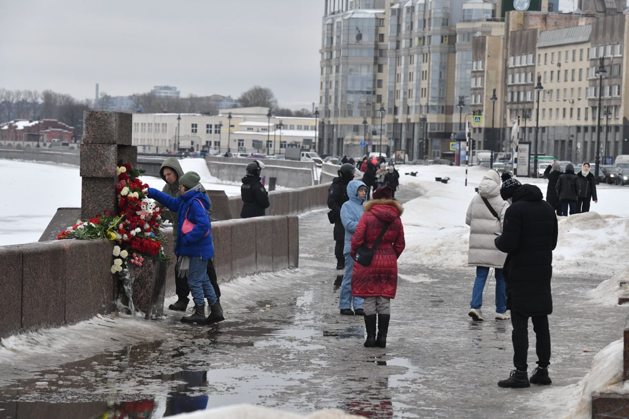 Петербуржцы продолжают нести цветы к стихийным мемориалам памяти Алексея Навального. У Соловецкого камня прошла панихида по политику, в городе продолжаются задержания. «Бумага» публикует фото из разных частей городе, где вспоминают политика.