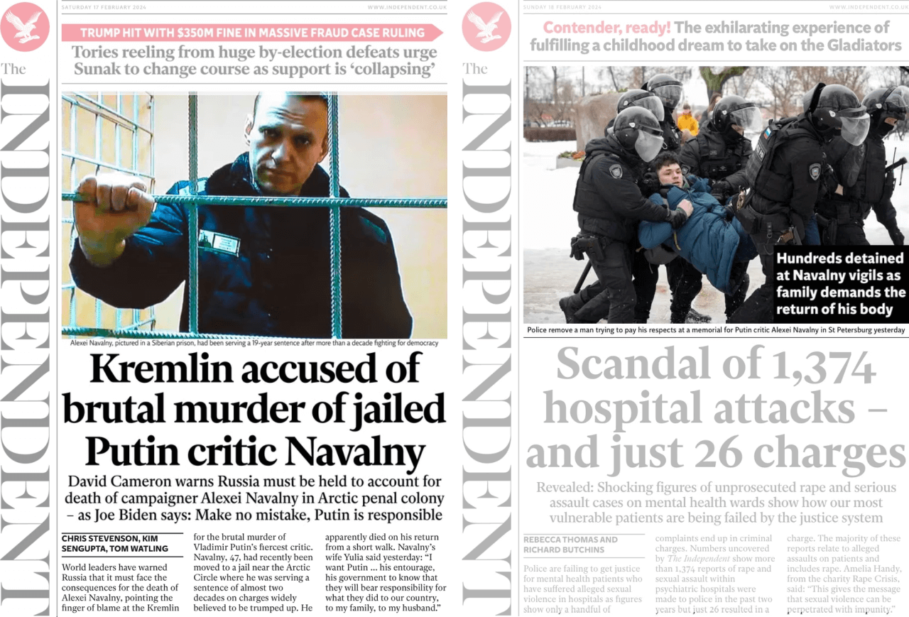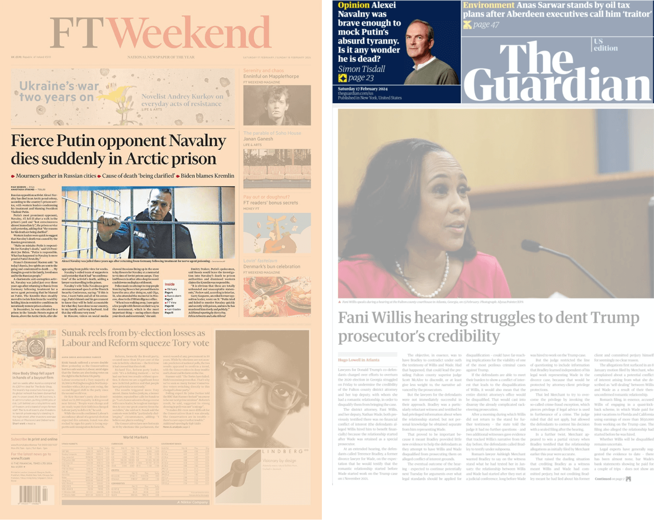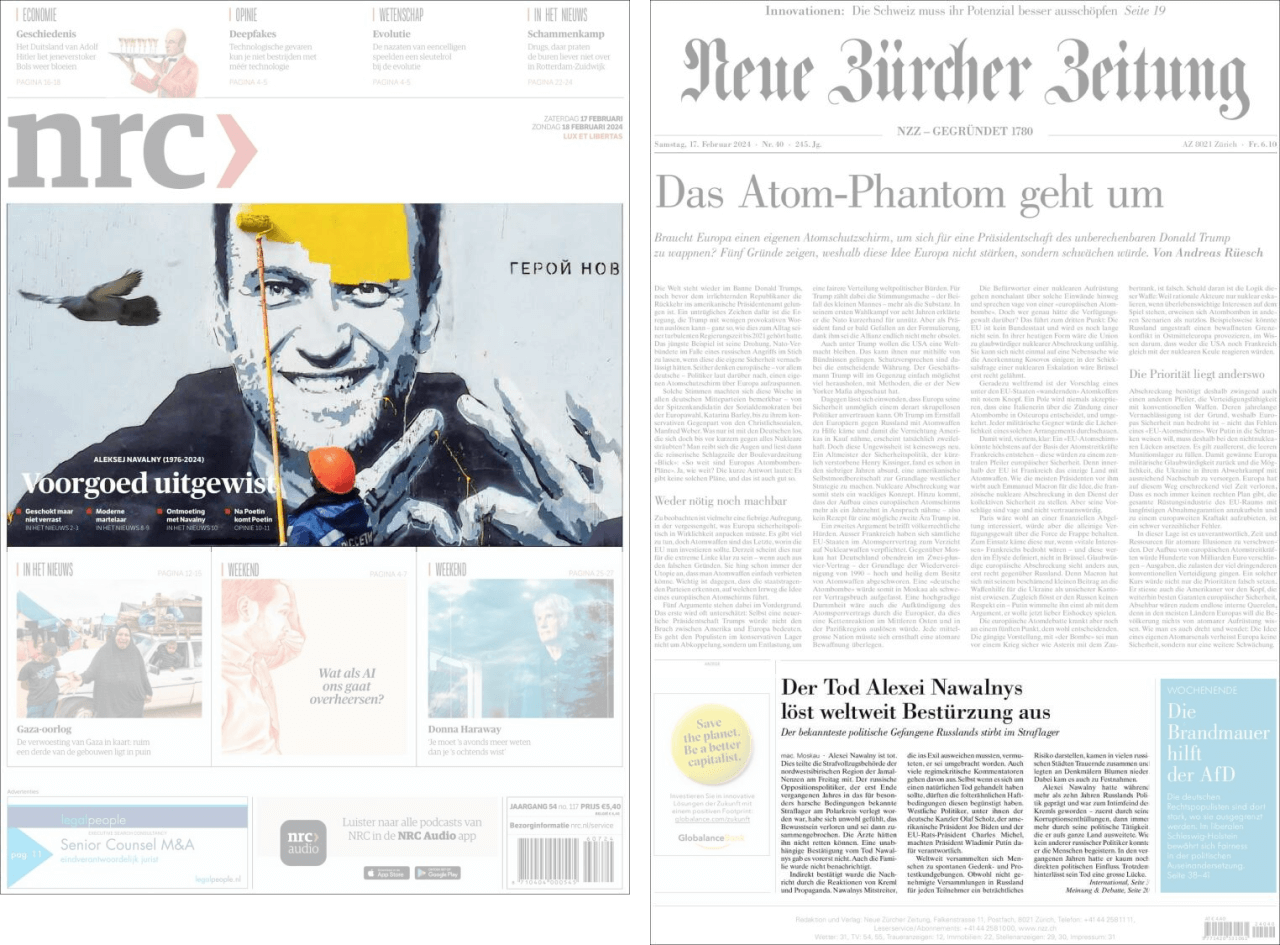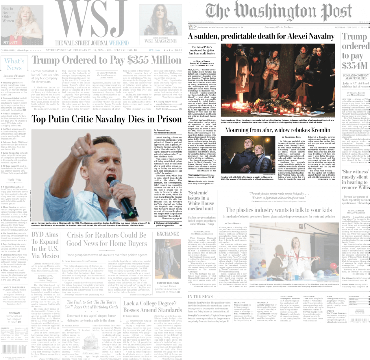Смерть Навального потрясла мир. Посмотрите, как выглядят первые полосы газет по всей планете (и не только на Западе)
