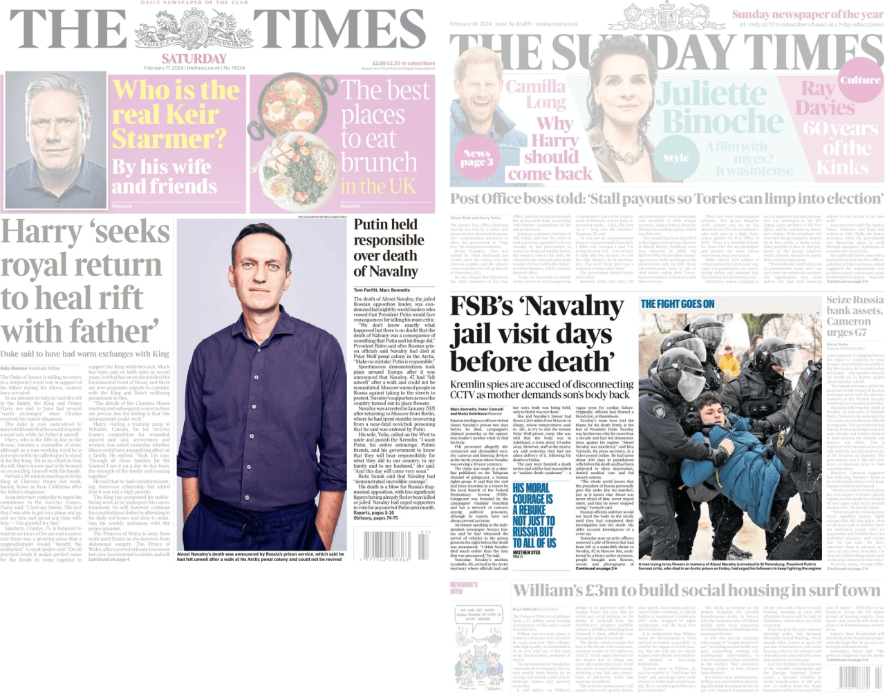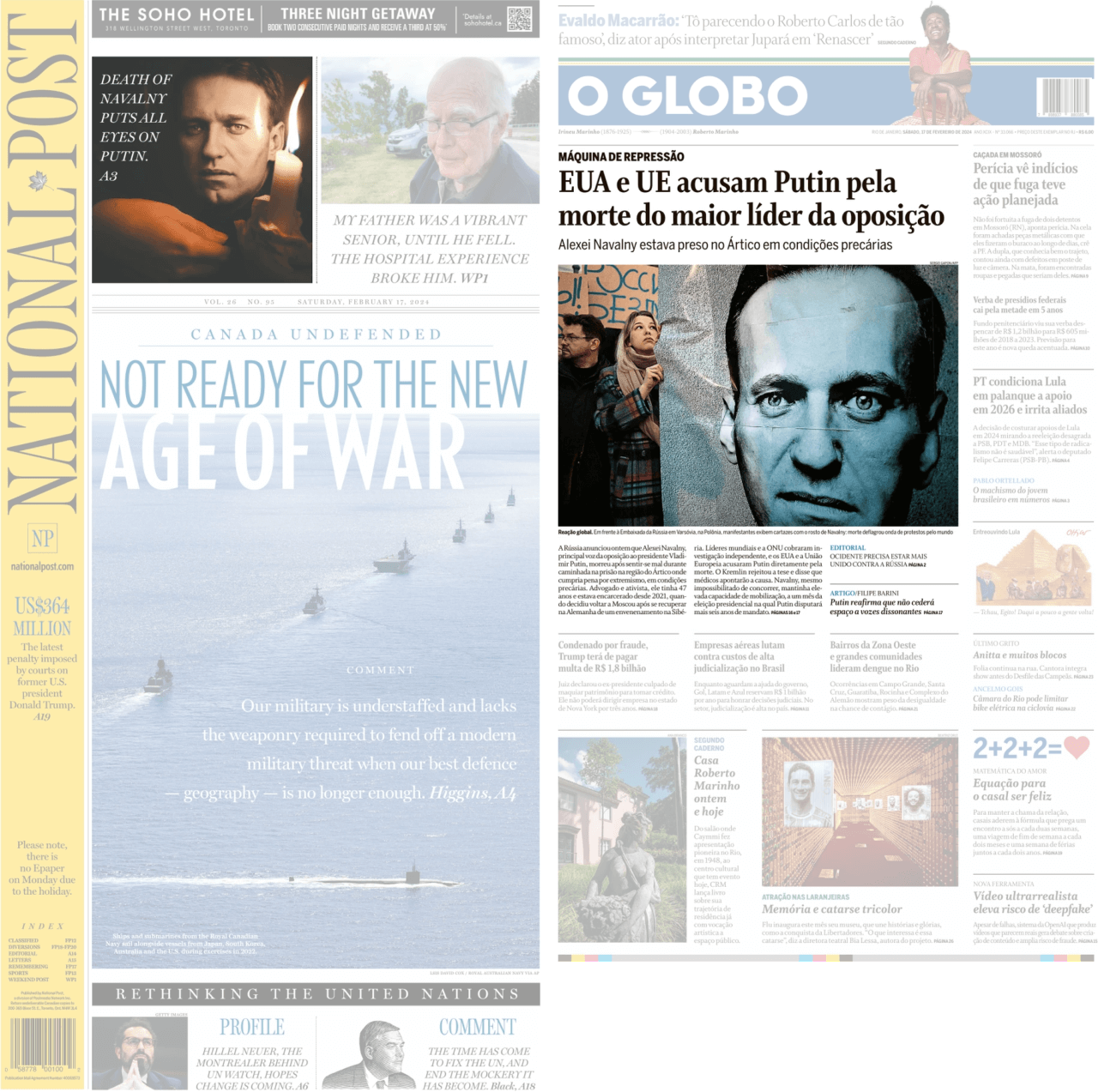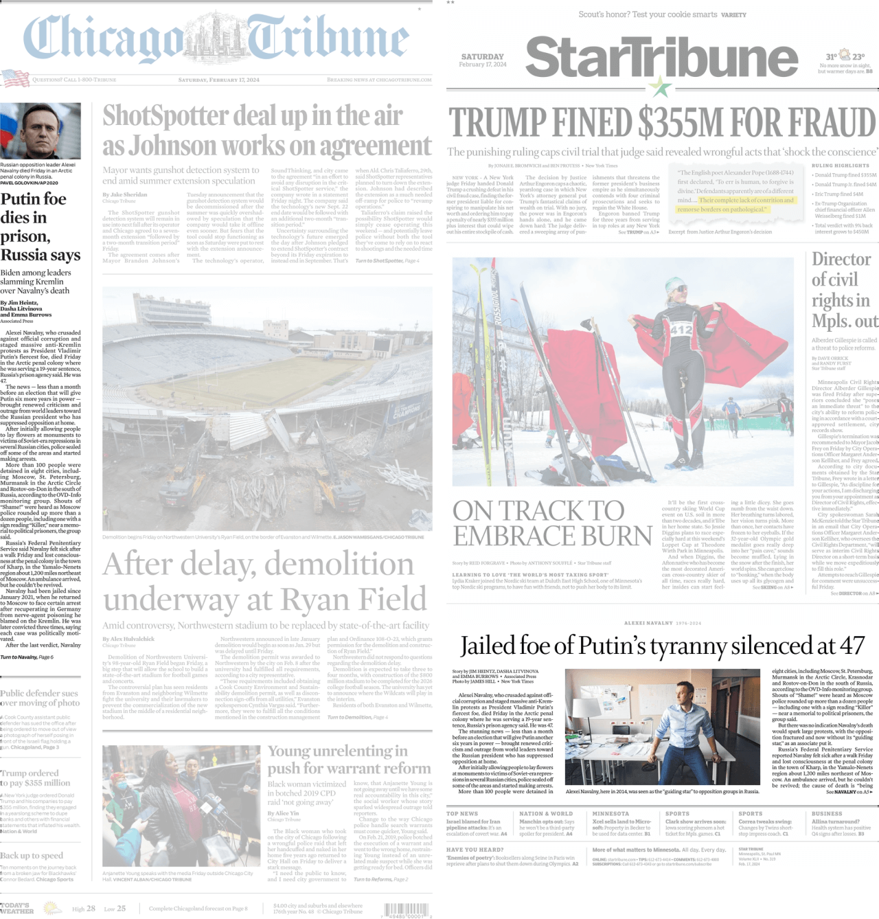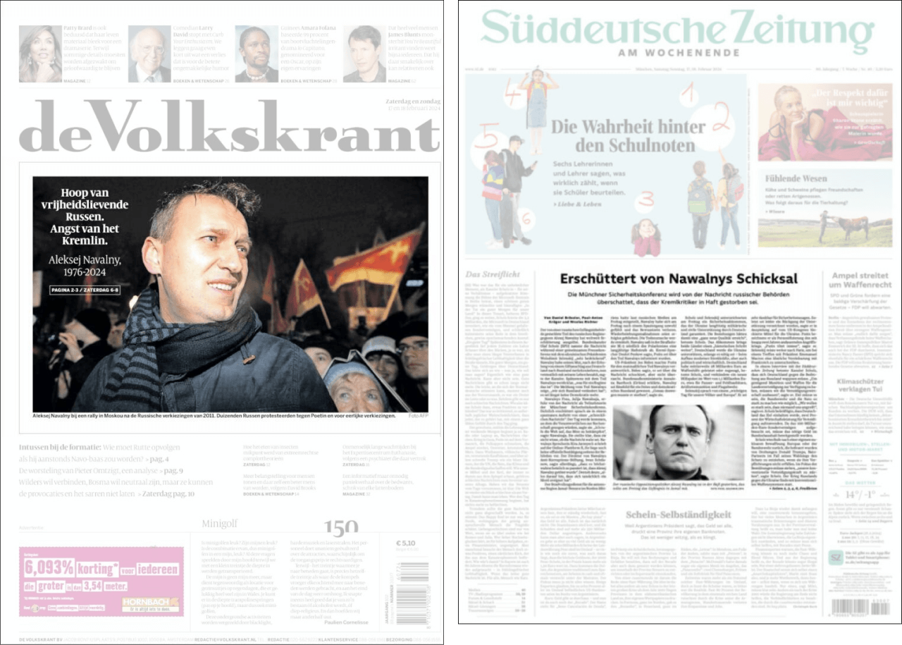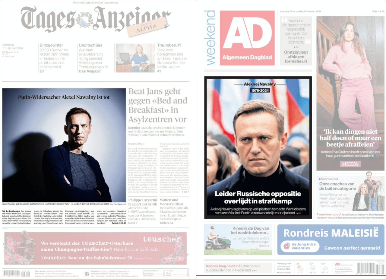 Смерть Навального потрясла мир. Посмотрите, как выглядят первые полосы газет по всей планете (и не только на Западе)
