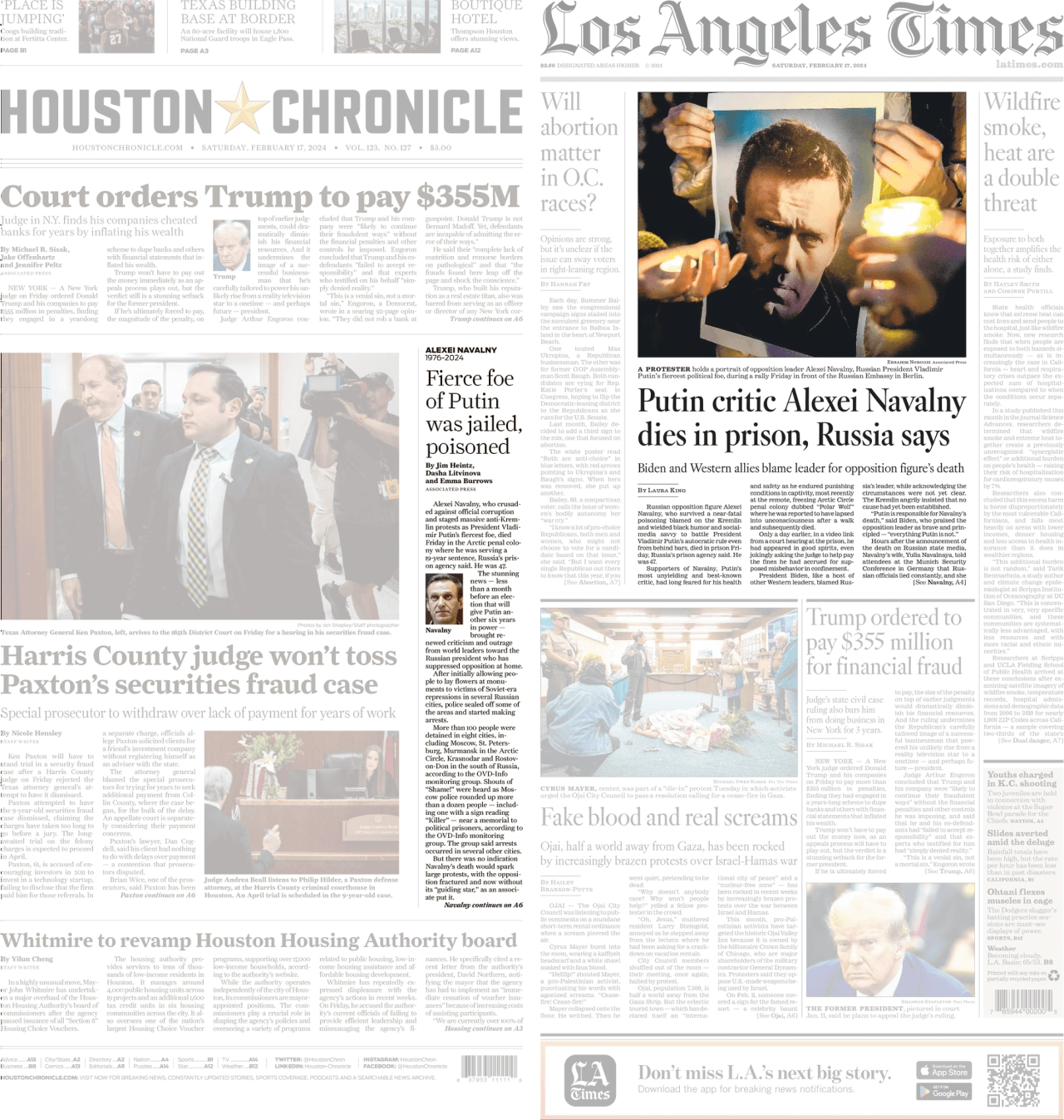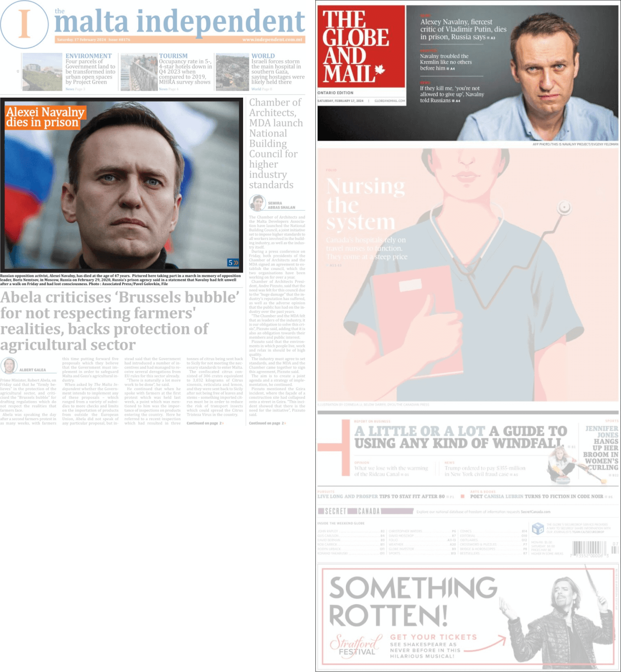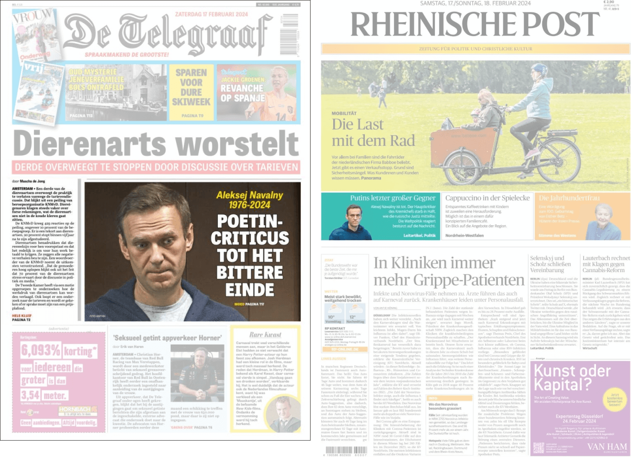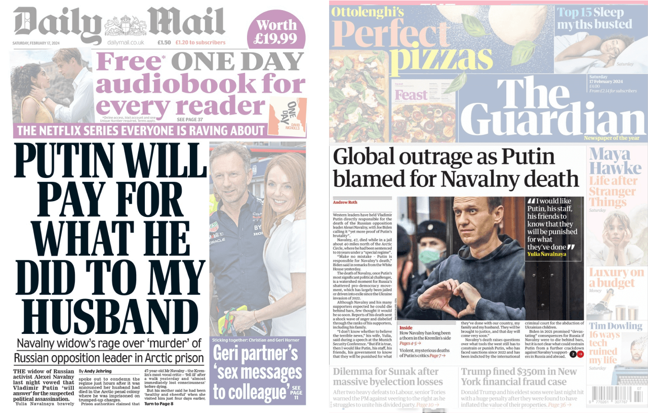 Смерть Навального потрясла мир. Посмотрите, как выглядят первые полосы газет по всей планете (и не только на Западе)
