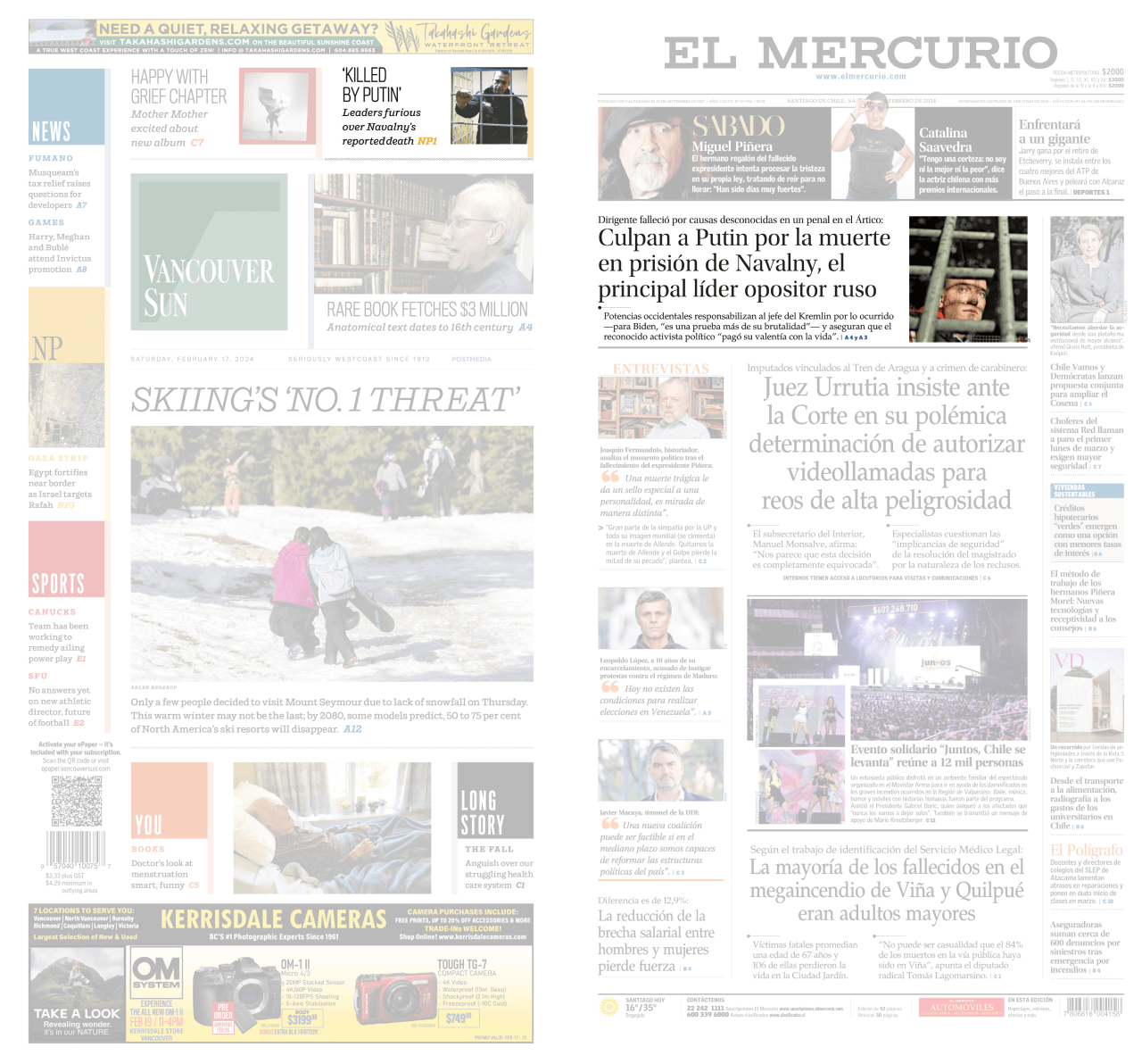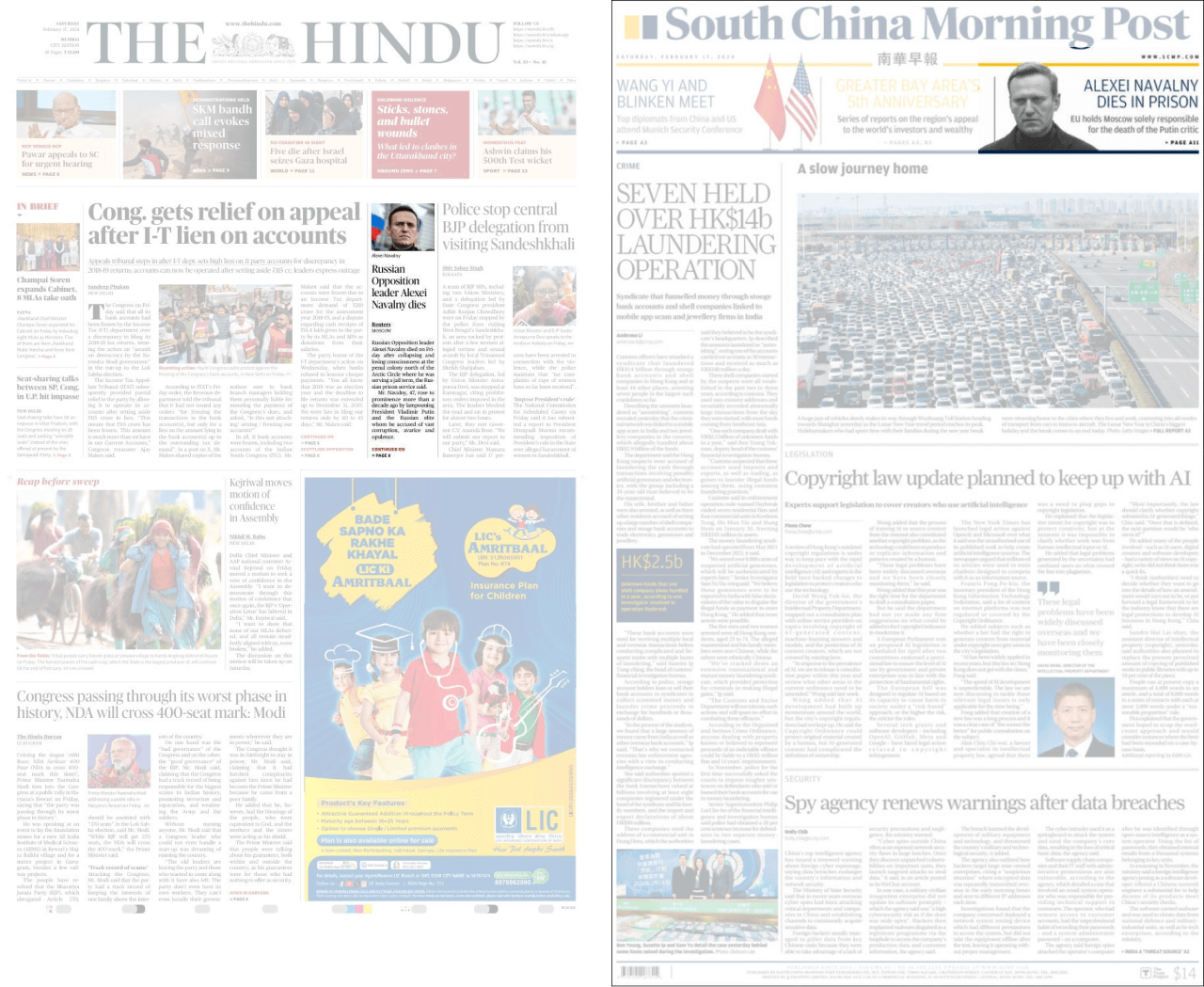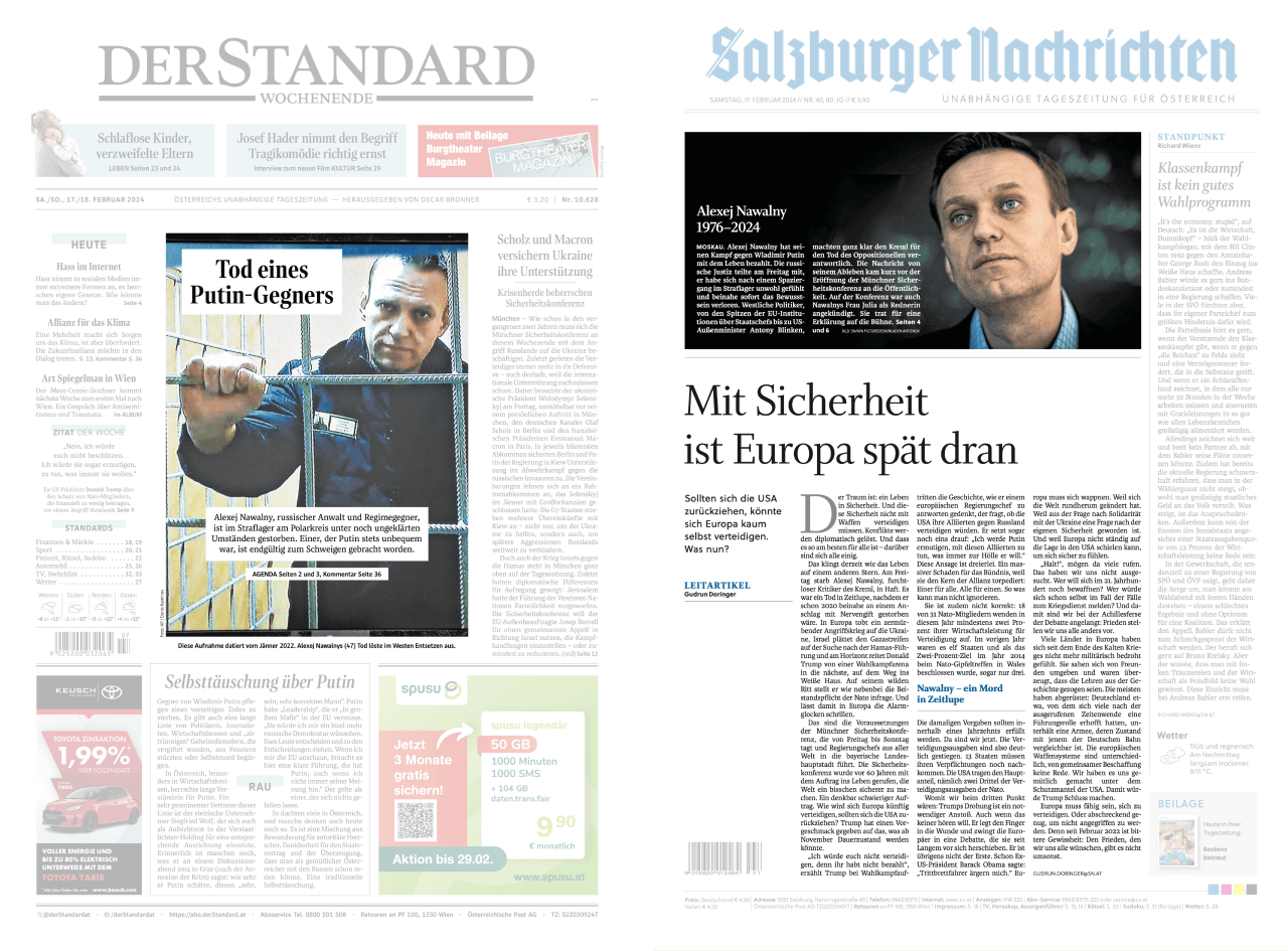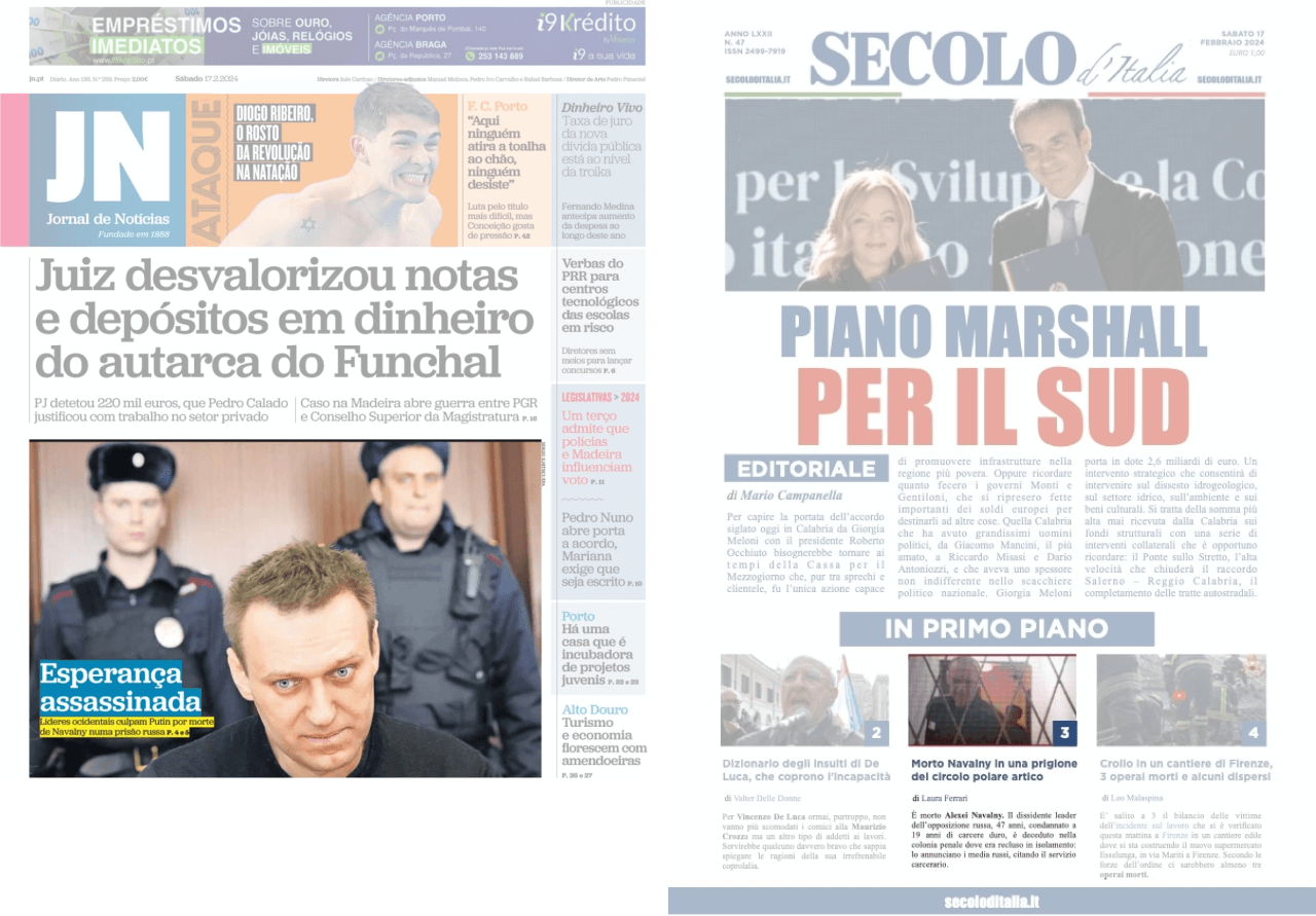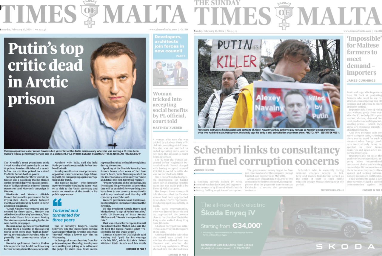Смерть Навального потрясла мир. Посмотрите, как выглядят первые полосы газет по всей планете (и не только на Западе)