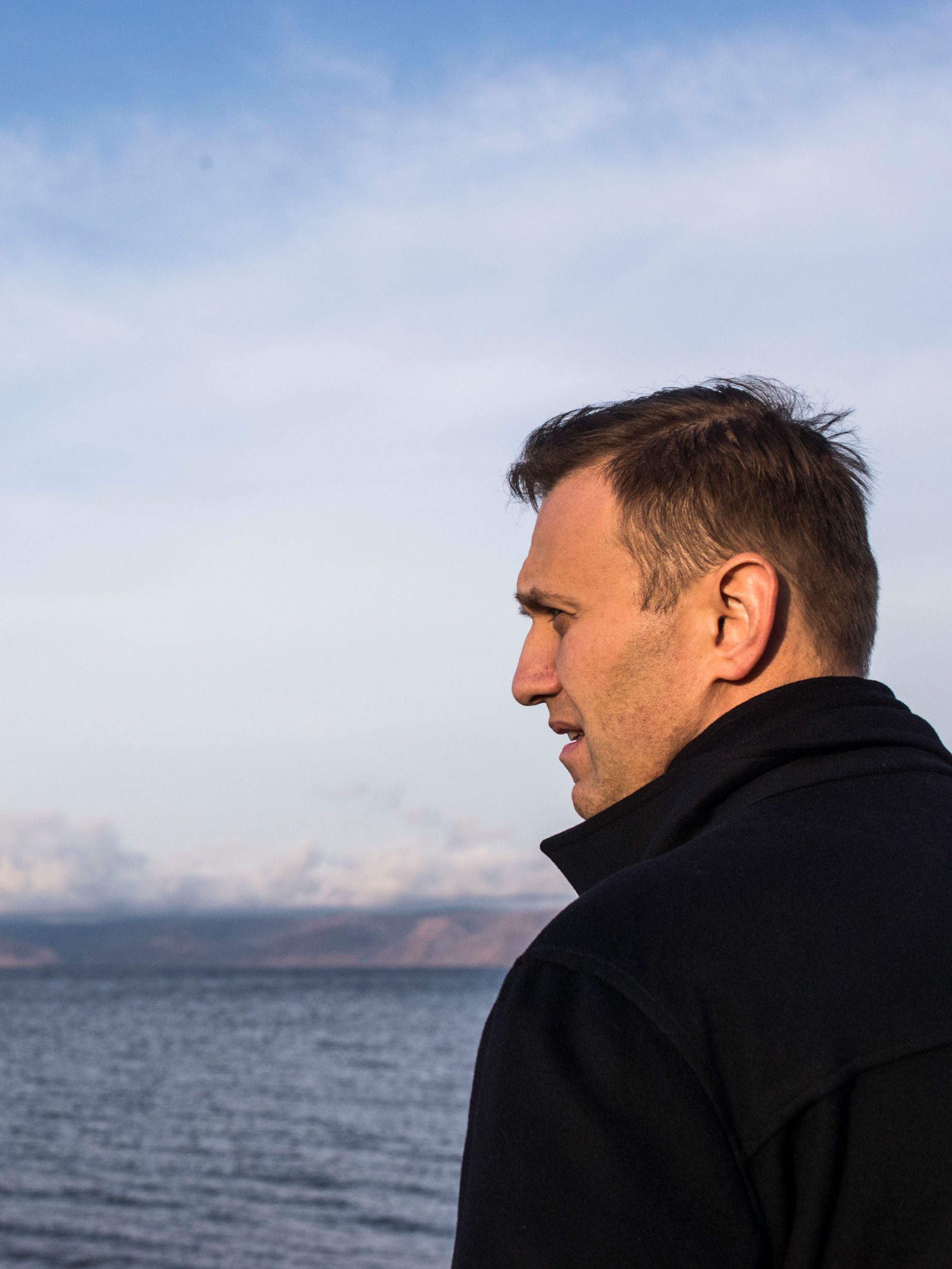 Navalny on the shore of Lake Baikal, in Irkutsk, where he travelled to meet voters during his presidential campaign. November 4, 2017. Evgeny Feldman