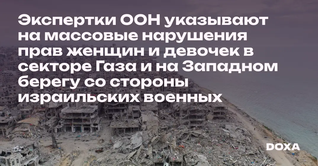 Экспертки ООН указывают на массовые нарушения прав женщин и девочек в секторе Газа и на Западном берегу реки Иордан со стороны израильских военных. Они располагают данными о произвольных казнях, арестах и актах сексуализированного насилия в отношении палестинок.