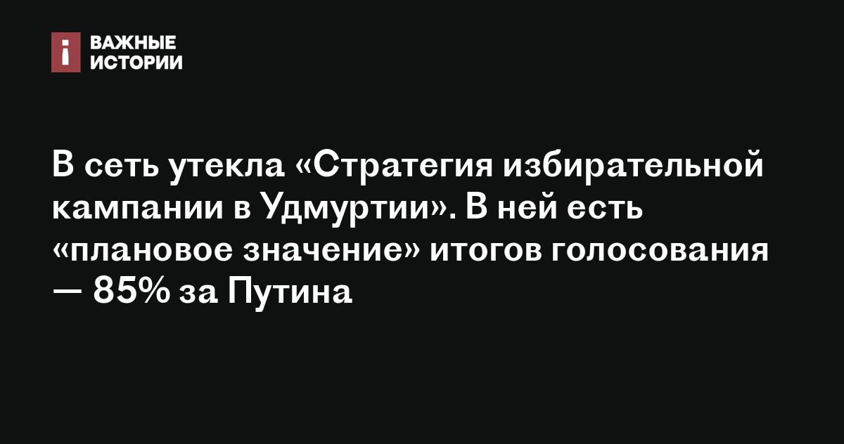 В сеть утекла «Стратегия избирательной кампании в Удмуртии». В ней есть «плановое значение» итогов голосования — 85% за Путина