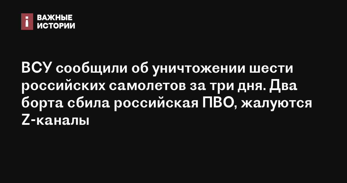 ВСУ сообщили об уничтожении шести российских самолетов за три дня. Два борта сбила российская ПВО, жалуются Z-каналы
