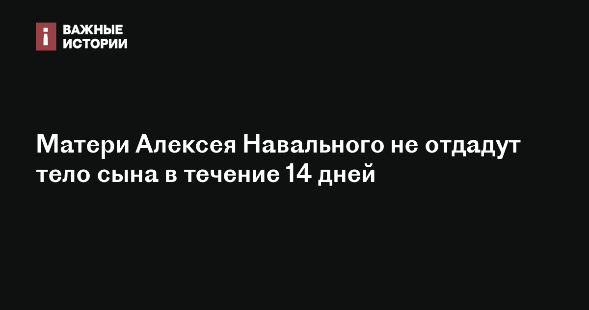 Тело погибшего в колонии Алексея Навального не отдадут его матери в течение 14 дней — пока будет проводиться «химическая экспертиза». Об этом сообщили соратники политика Иван Жданов и Кира Ярмыш со ссылкой на следователя.