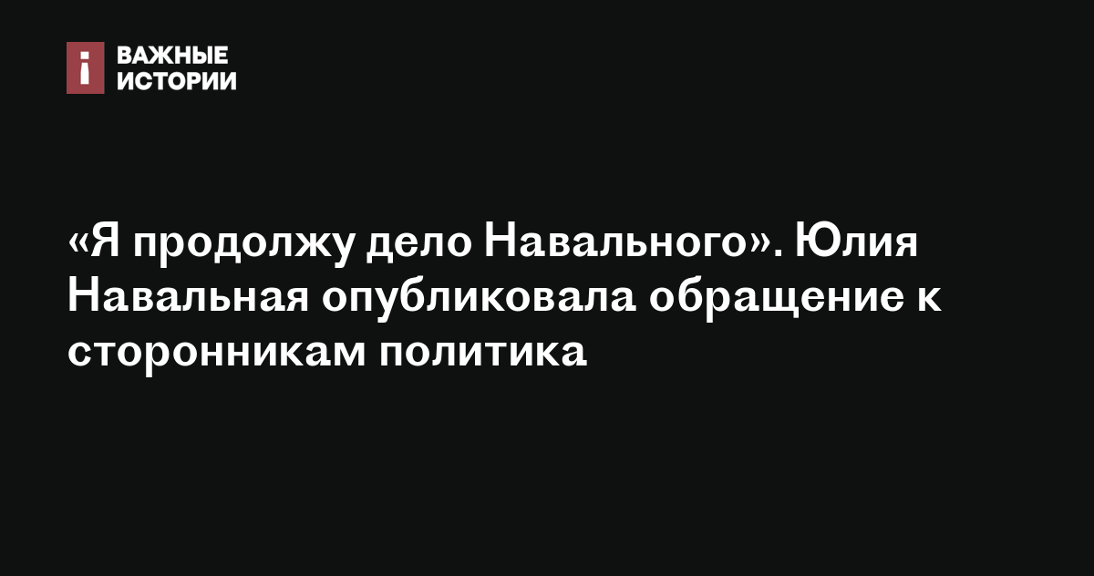 Юлия Навальная опубликовала обращение к сторонникам политика, в котором заявила, что продолжит дело Алексея Навального. Видео размещено на YouTube-канале Навального.