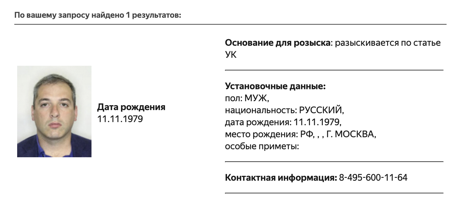 МВД объявило в розыск гендиректора «Ленфильма» и владельца федерального медиахолдинга 1MI Федора Щербакова, внимание на информацию в базе розыска ведомства обратила «Фонтанка».