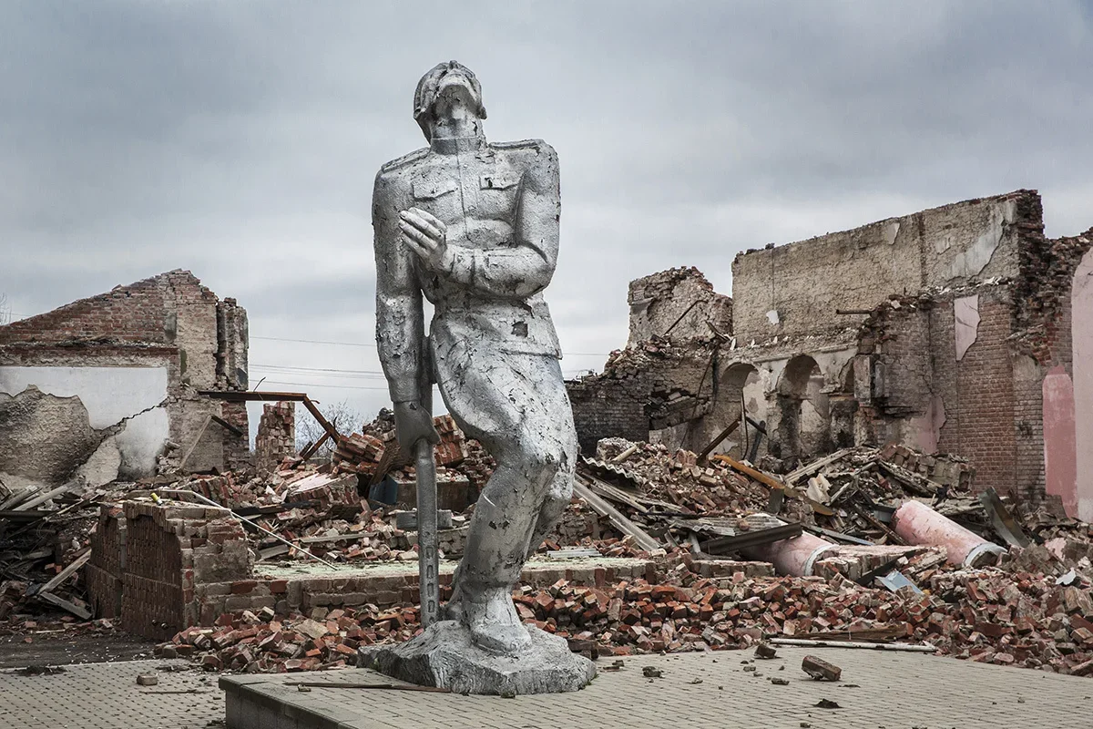 A view of the Avdiivka Coke and Chemical Plant, the largest coke producer in the country before the war, February 2024. Photo: Kostiantyn Liberov / Libkos / Getty ImagesA police officer escorting a local man as he evacuates from Avdiivka, October 2023. Photo: Vlada Liberova / Libkos / Getty ImagesThe Monument to the Unknown Soldier in Avdiivka, December 2023. Photo: Marek M. Berezowski / Anadolu / Getty ImagesThe ruins of Avdiivka, December 2023. Photo: Kostiantyn Liberov / Libkos / Getty ImagesThe ruins of Avdiivka, December 2023. Photo: Kostiantyn Liberov / Libkos / Getty ImagesThe remains of an apartment block in Avdiivka, December 2023. Photo: Vlada Liberova / Libkos / Getty ImagesAbandoned military vehicles on the road to Avdiivka, February 2024. Photo: Kostiantyn Liberov / Libkos / Getty Images“Avdiivka is Ukraine” reads the now infamous sign at the entrance to the city. Photo: Pierre Crom / Getty ImagesUkrainian soldiers on their way into the city, February 2024. Photo: Vlada Liberova / Libkos / Getty Images