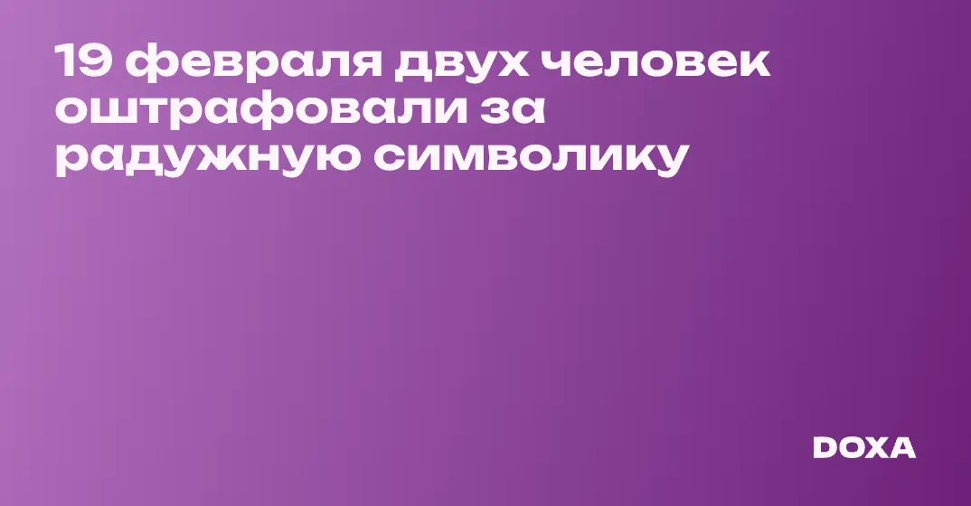 19 февраля жительница Тулы была оштрафована по статье о демонстрациич. 1 ст. 20.3 КоАП экстремистской символики на 1000 рублей. Согласно публикации пресс-службы судов Тульской области, ей вменили размещение 15 материалов с «символикой международного общественного движения ЛГБТ» на личной странице в VK.