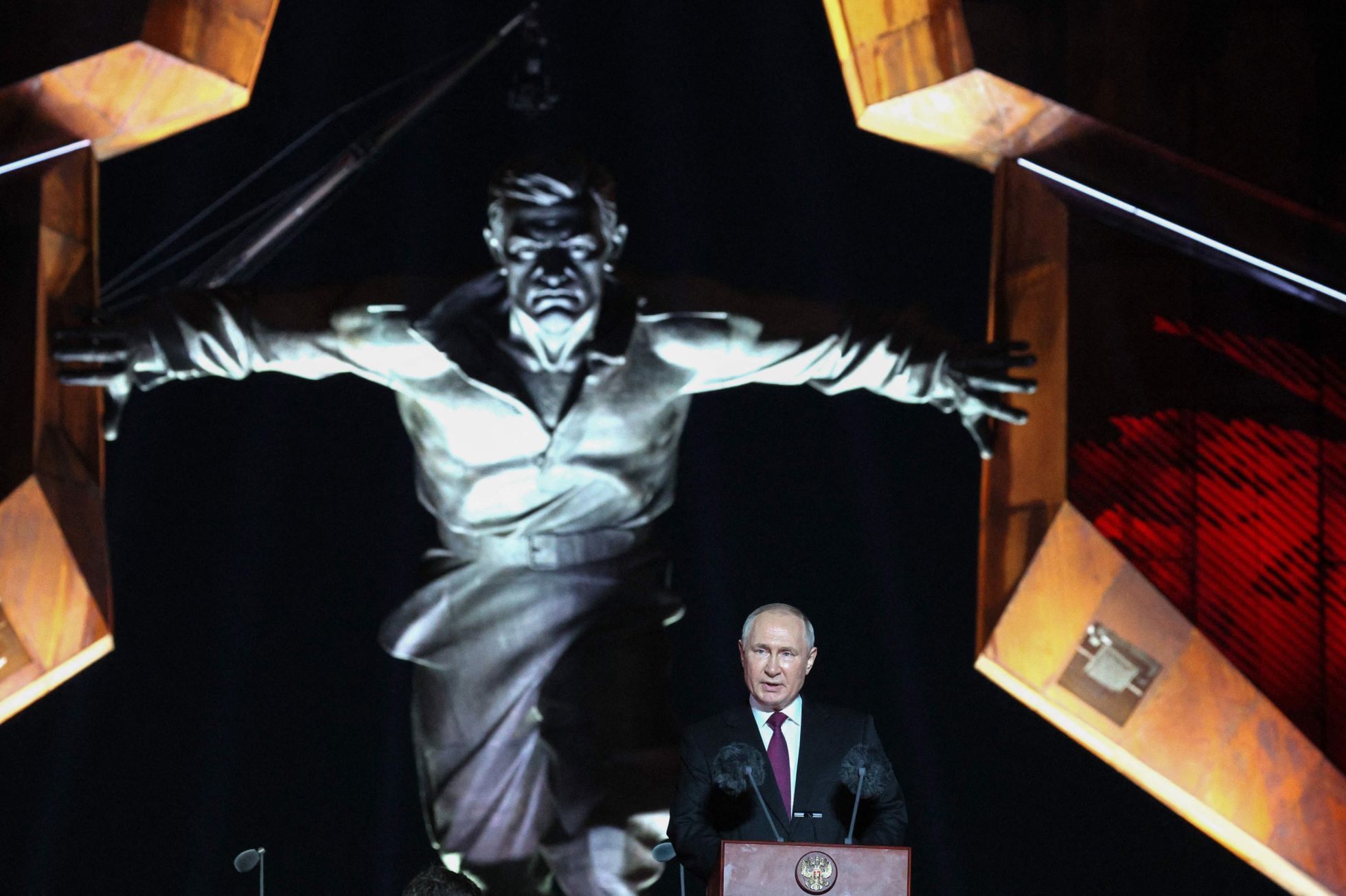 Gavriil Grigorov / Sputnik / AFP / Scanpix / LETA Putin addresses the audience at a ceremony marking the 80th anniversary of the victory in the Battle of Kursk, a major World War II battle between Nazi Germany and the Soviet Union. Kursk, Russia, August 23, 2023.