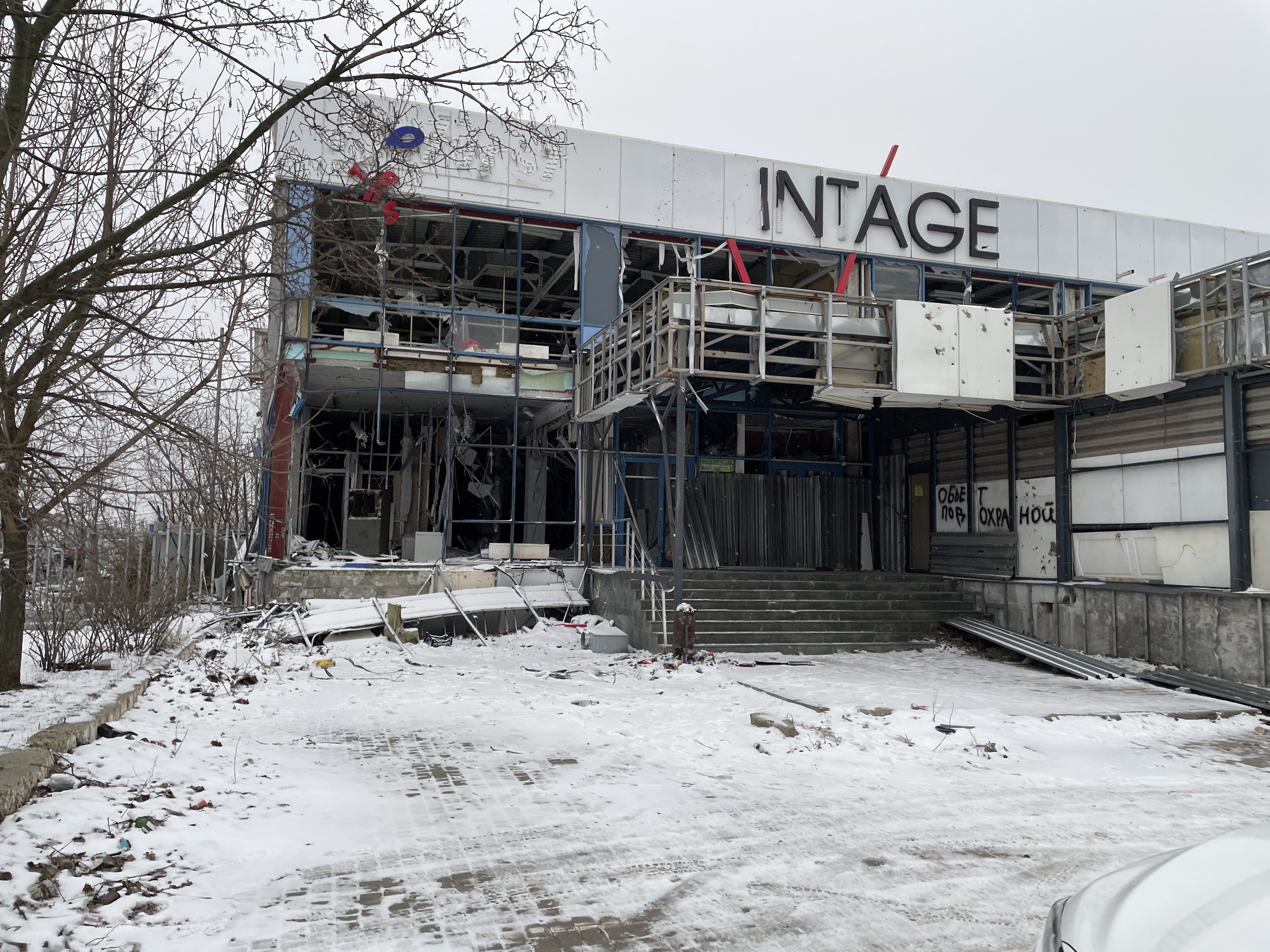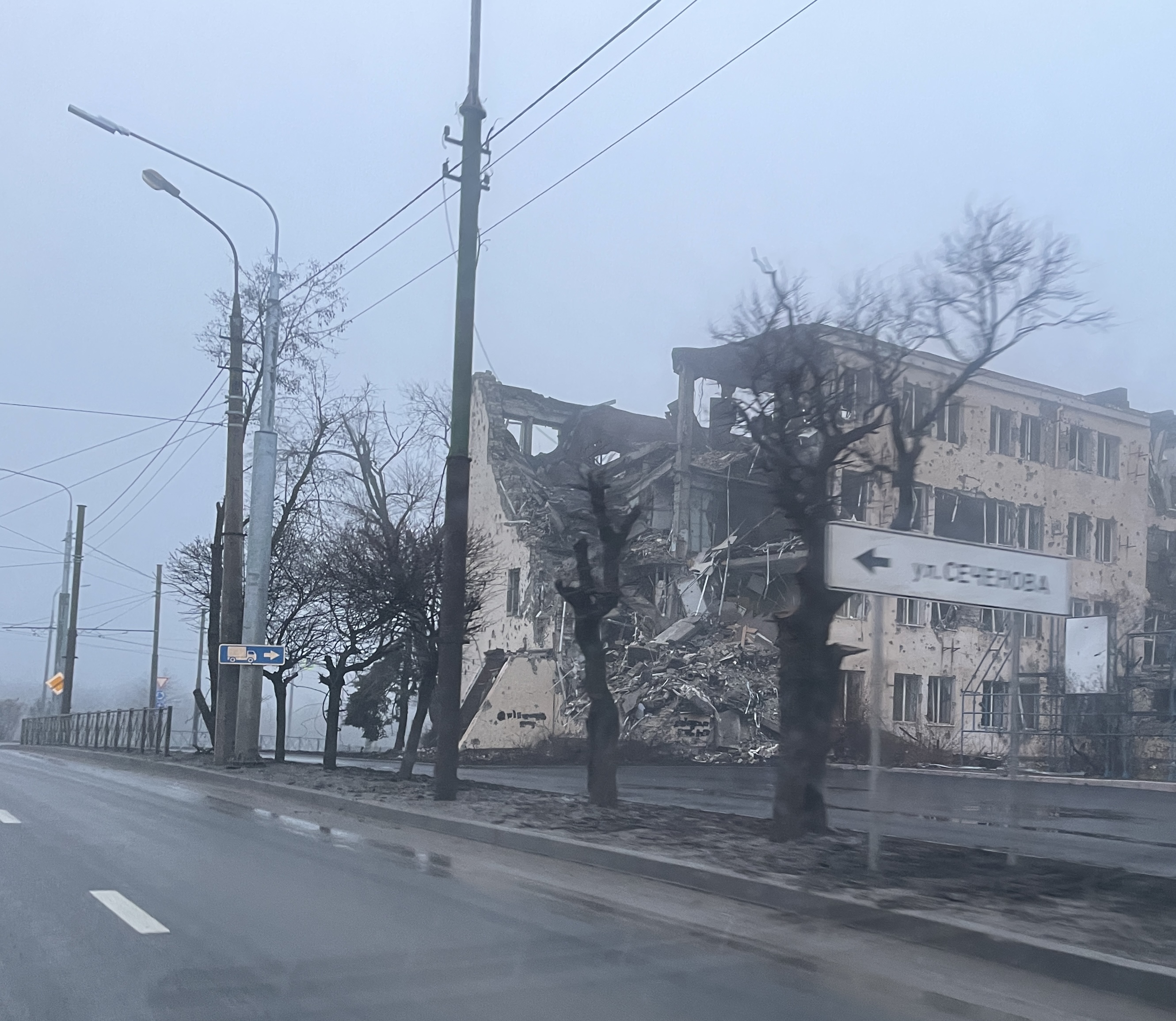 В офисе "Феникса", который располагается в бывшем здании "Киевстара", немноголюдно. Со времен штурма оно, как и большая часть города, не изменилось – лишь исчезла вывеска "Киевстар". Чуть левее – греческий культурный центр, а справа бывший ресторан. Оба здания восстановить даже не пытались.
