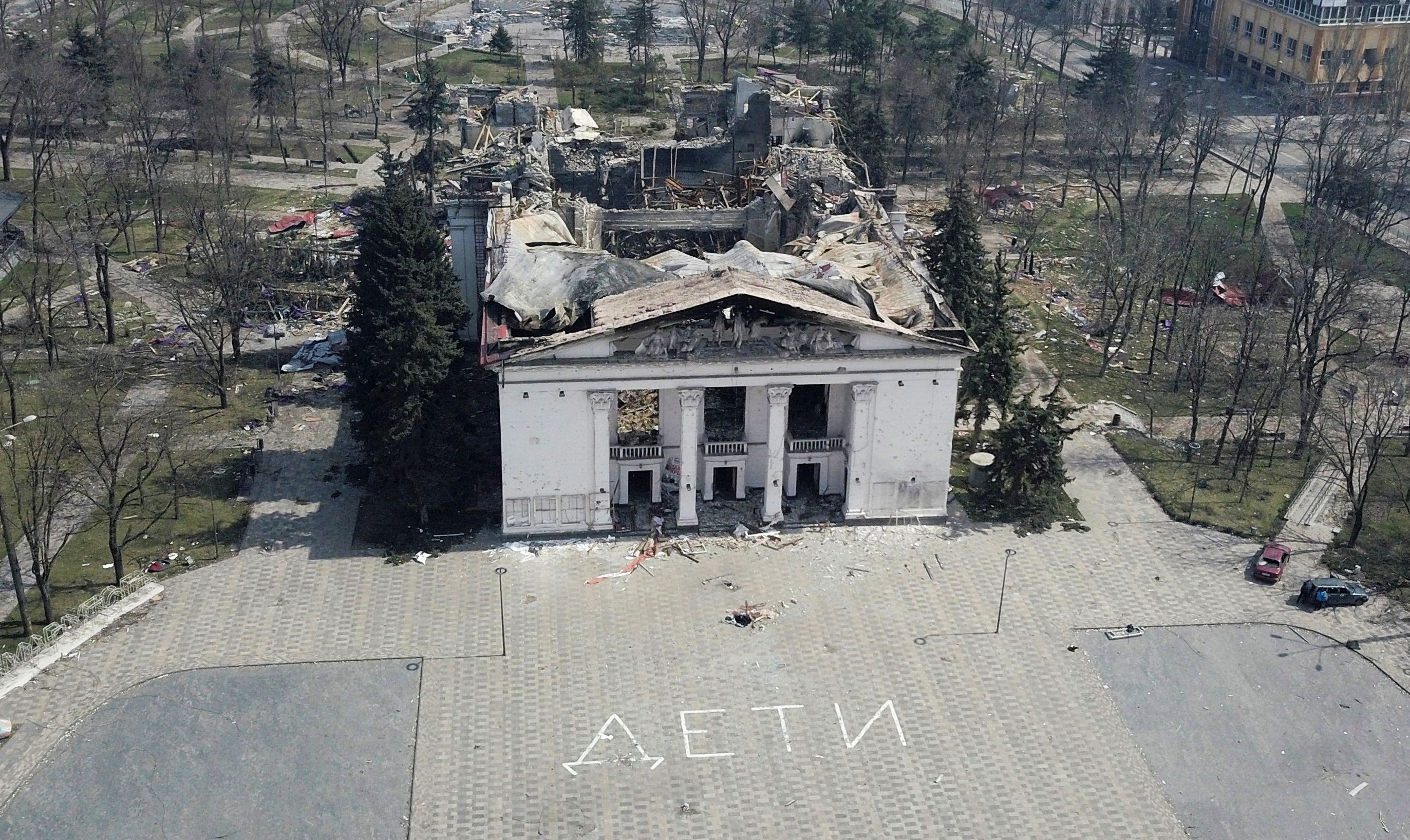 Фото разбомбленного здания с крупной надписью ДЕТИ на асфальте перед входом стало одним из символов этой войны. Заметное количество административных и даже уголовных дел в России по "дискредитации вооруженных сил РФ" возбуждались именно за распространение сведений о драмтеатре.
