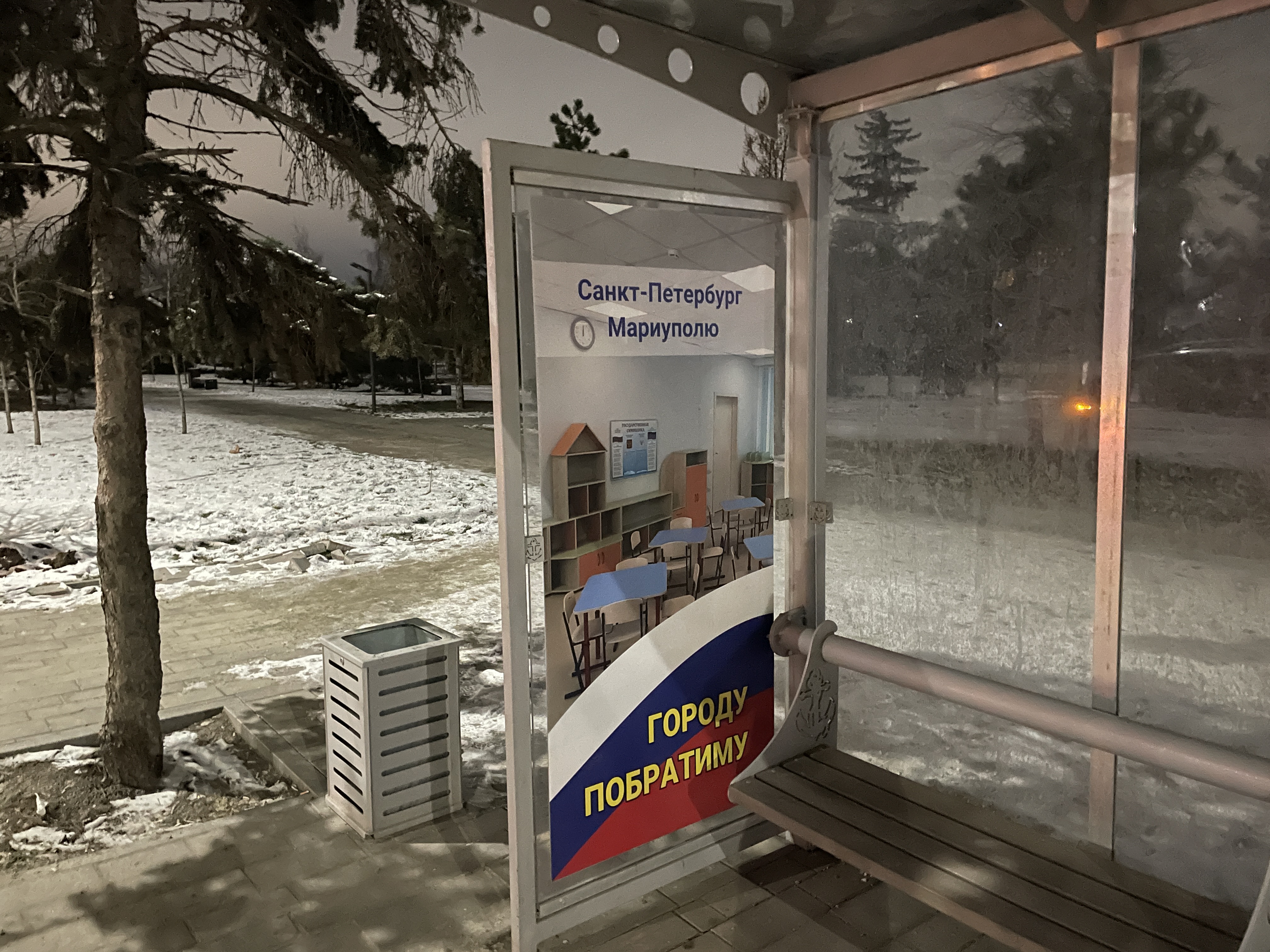 Российские власти стирают любые напоминания об Украине: переименовывают улицы, закрашивают флаги, хотя попытки сделать триколор из желто-голубого флага часто бывают провальными. На редких старых трамваях халтурно закрашены надписи на украинском "Марiупольский транспорт". Въезд в город украшает прежняя, построенная в Украине бетонная надпись, только теперь она бело-сине-красная. На въезде – все тот же металлург, постамент которого при штурме города был изуродован первым. Около года на нем красовалась зловещая надпись: "ДНРы идут". Сейчас ее стерли.