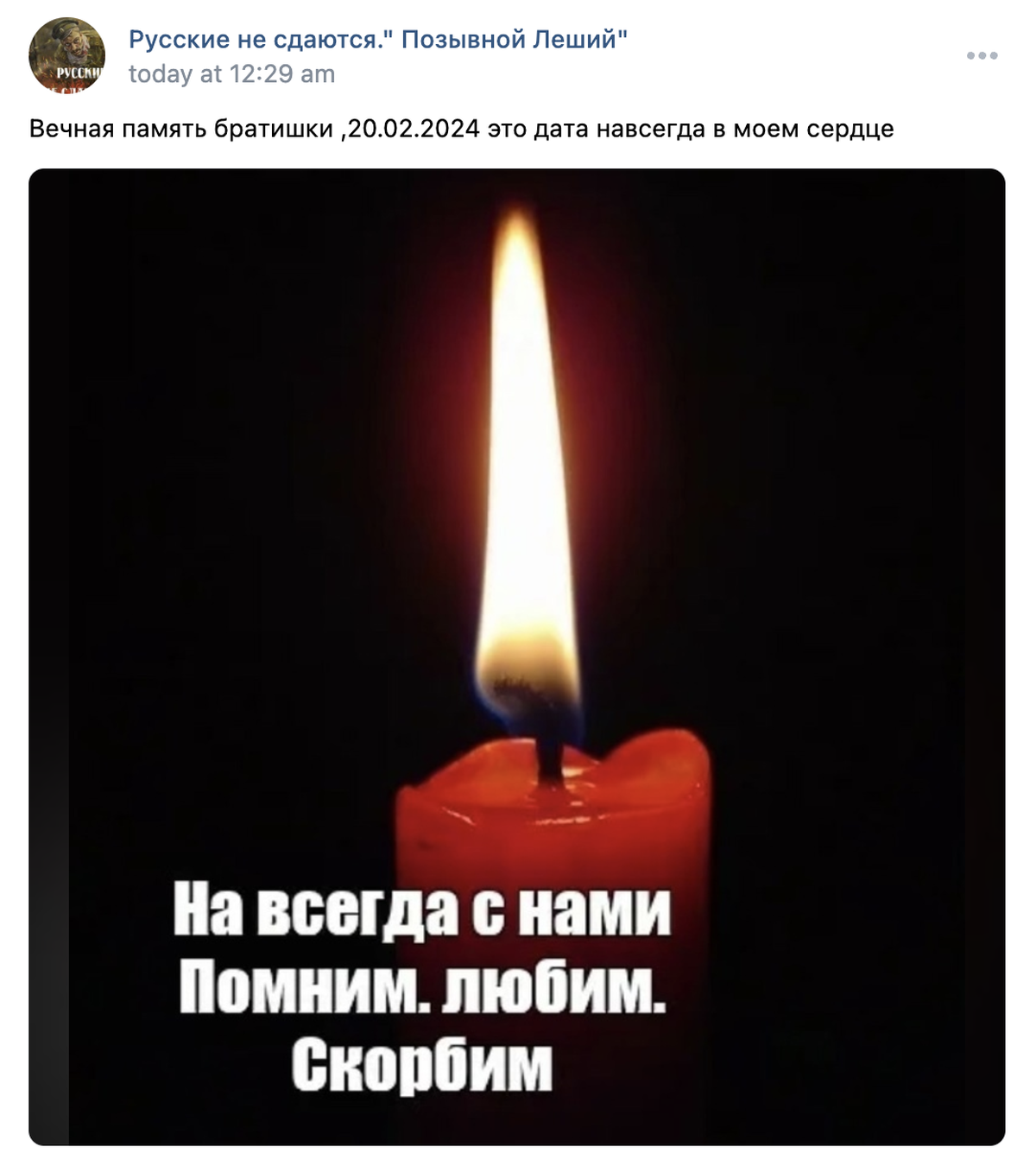 Военный Алексей Михалев, который называет себя заместителем командира батальона специального назначения Восточного военного округа (ВВО), опубликовал в своей группе «ВКонтакте» пост: «Вечная память братишки ,20.02.2024 это дата навсегда в моем сердце» (орфография и пунктуация автора сохранены. — Прим. ред.).