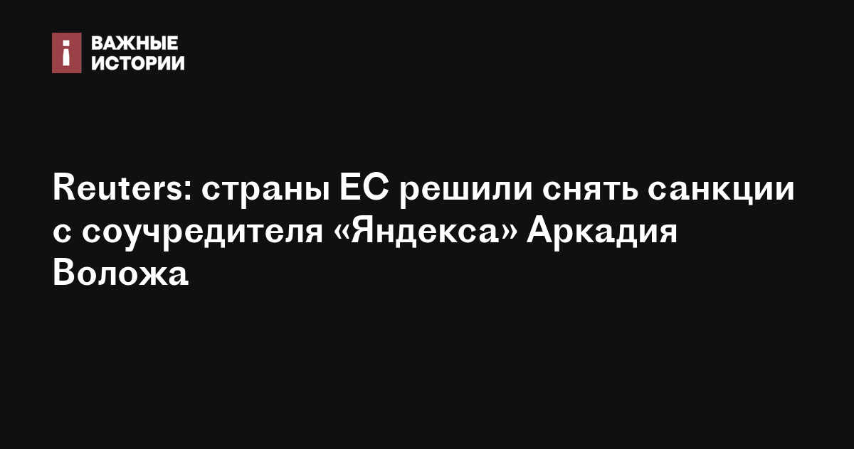 Страны ЕС решили снять санкции с соучредителя «Яндекса» Аркадия Воложа и еще двоих человек в марте. Об этом сообщает Reuters со ссылкой на три источника.