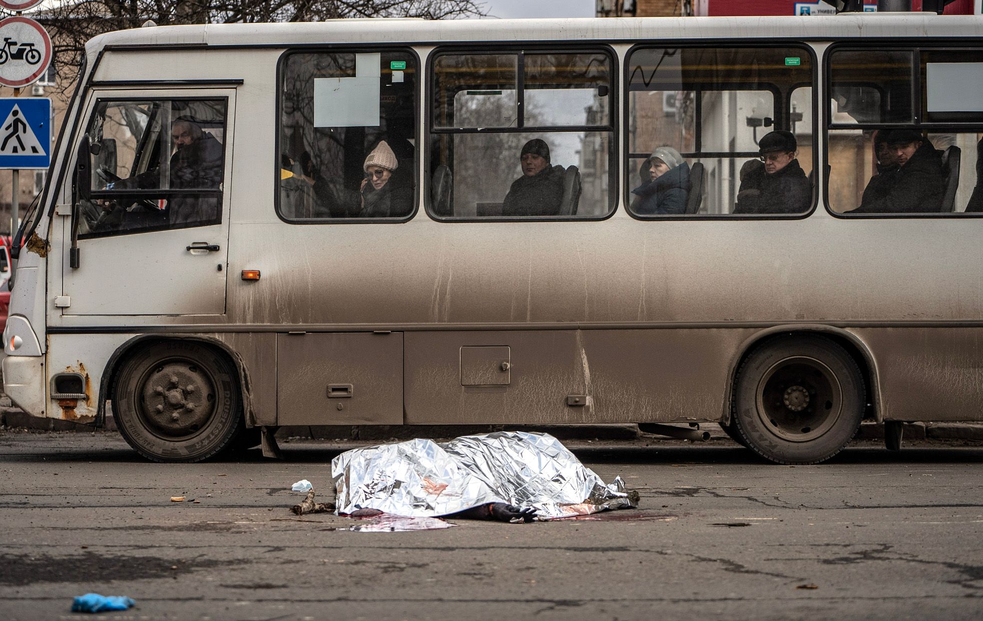 Валерий Мельников / EPA / Scanpix / LETA Жители Донецка смотрят на тело женщины, погибшей во время обстрела. Еще три человека были ранены