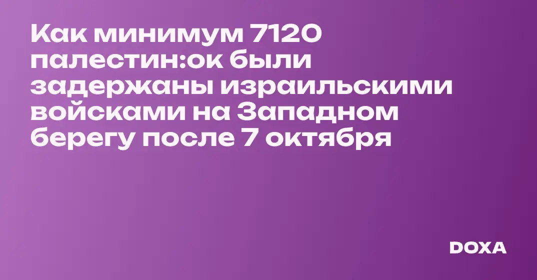 Как минимум 7120 палестин:ок были задержаны израильскими войсками на Западном берегу после 7 октября