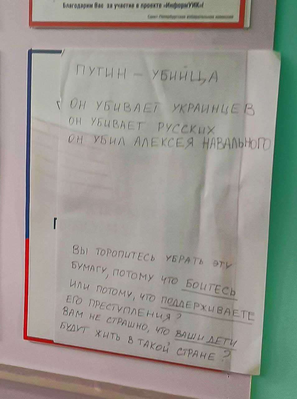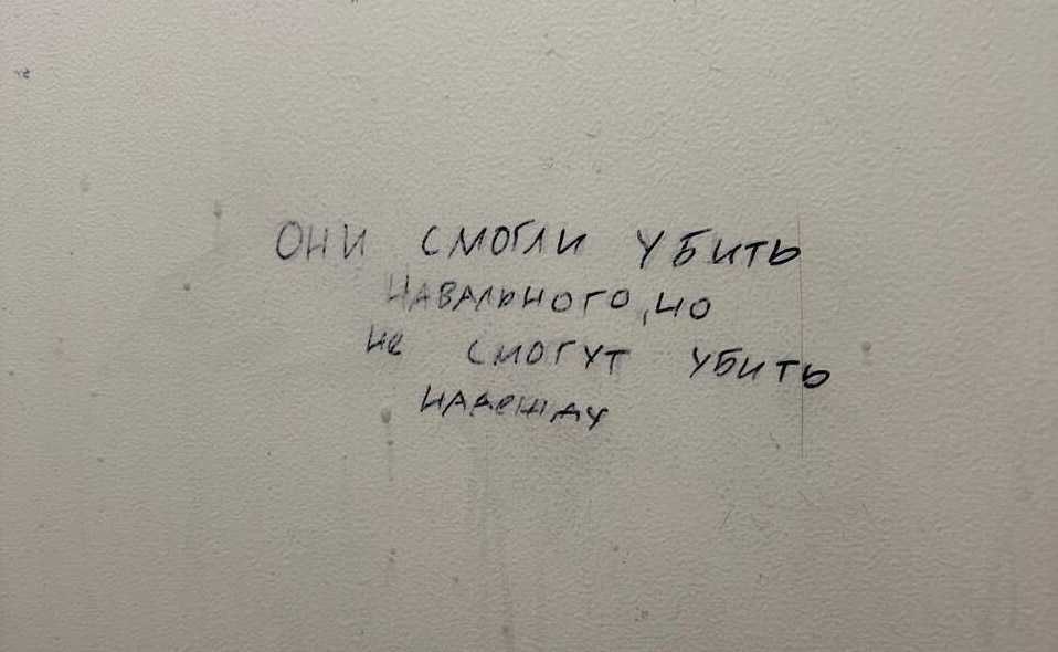 Надпись [«Они смогли убить Навального, но не смогут убить надежду» в лифте] прожила около двух–трех суток. Сперва остались следы, но сейчас уже совсем стерли. Вообще у нас помойка и срач, я оставляла заявки на уборку стен, мне потом только сообщения о выполнении прилетали, по факту ничего не делали. А [c надписью про Навального] прямо оперативно сработали, смешные.