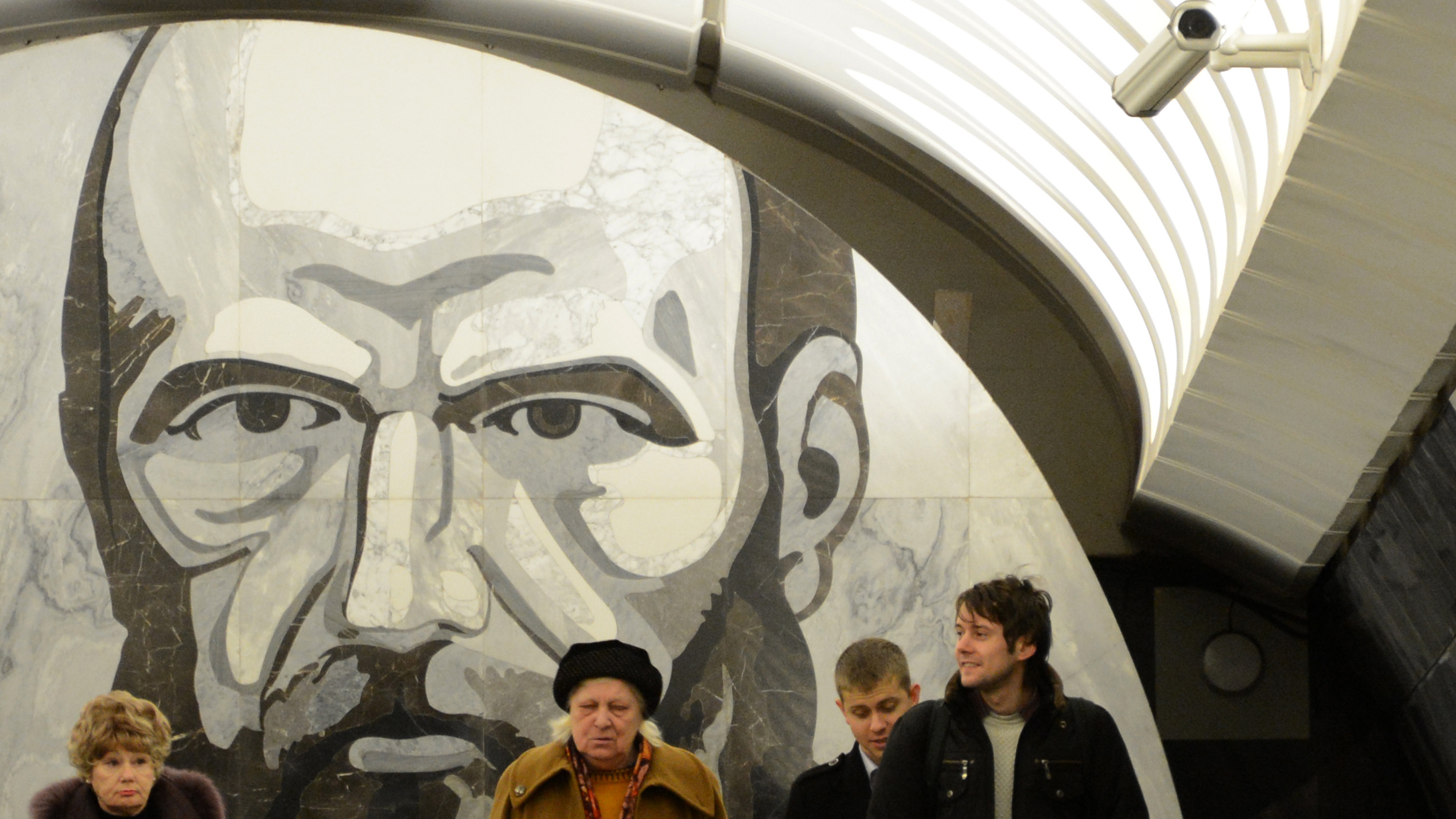Пассажиры на станции метро "Достоевская" в Москве