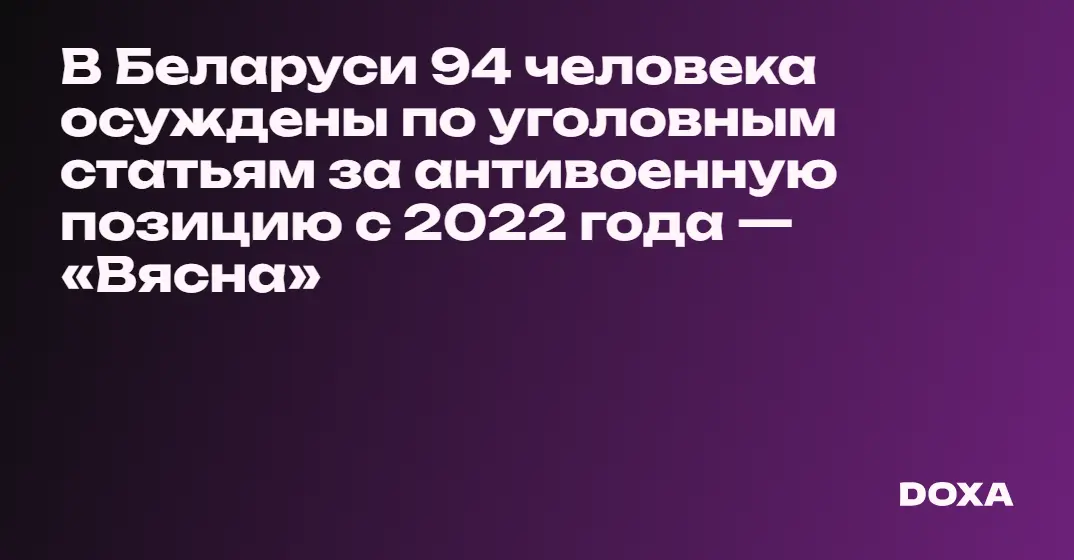 В Беларуси 94 человека осуждены по уголовным статьям за антивоенную позицию с 2022 года — «Вясна»