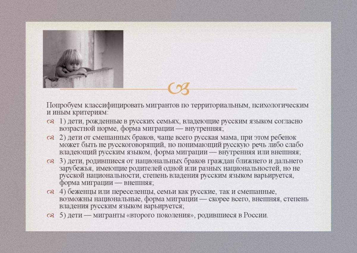 Чтобы помочь ребенку из Донбасса адаптироваться в России, нужно знать типичные черты «социального и национально-психологического облика» их народа, рассказывают проводящие обучение специалисты. «В любой момент может возникнуть ситуация, затрагивающая и национальность, и менталитет на фоне каких-то политических взаимодействий. Чем лучше мы будем понимать менталитет народа и менталитет детей представителей этого народа, тем больше у нас возможностей быть для ребенка полезным и надежным. Национальная идентичность ребенка — это реальность, с которой необходимо считаться и работать», — говорят на тренинге для сотрудников служб сопровождения семей, которые будут помогать таким приемным родителям. Как именно нужно работать с менталитетом детей из Украины, на тренинге не уточняют.