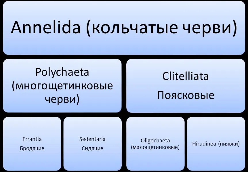 На схеме внизу — современная система аннелид (по Weigert, Bleidorn 2016). В желтом прямоугольнике — группы базальной радиации. Седентарные (в синем) и эррантные (в зеленом) раскрыты по сторонам от общей схемы. Красным подчеркнуты таксоны, которые раньше были отдельными классами или типами. Получается, что полихеты — это все аннелиды, которые не принадлежат к этим группам, т. е. этот таксон не включает всех потомков одного предка. Такие таксоны называют парафилетическими и они не должны использоваться в систематике.