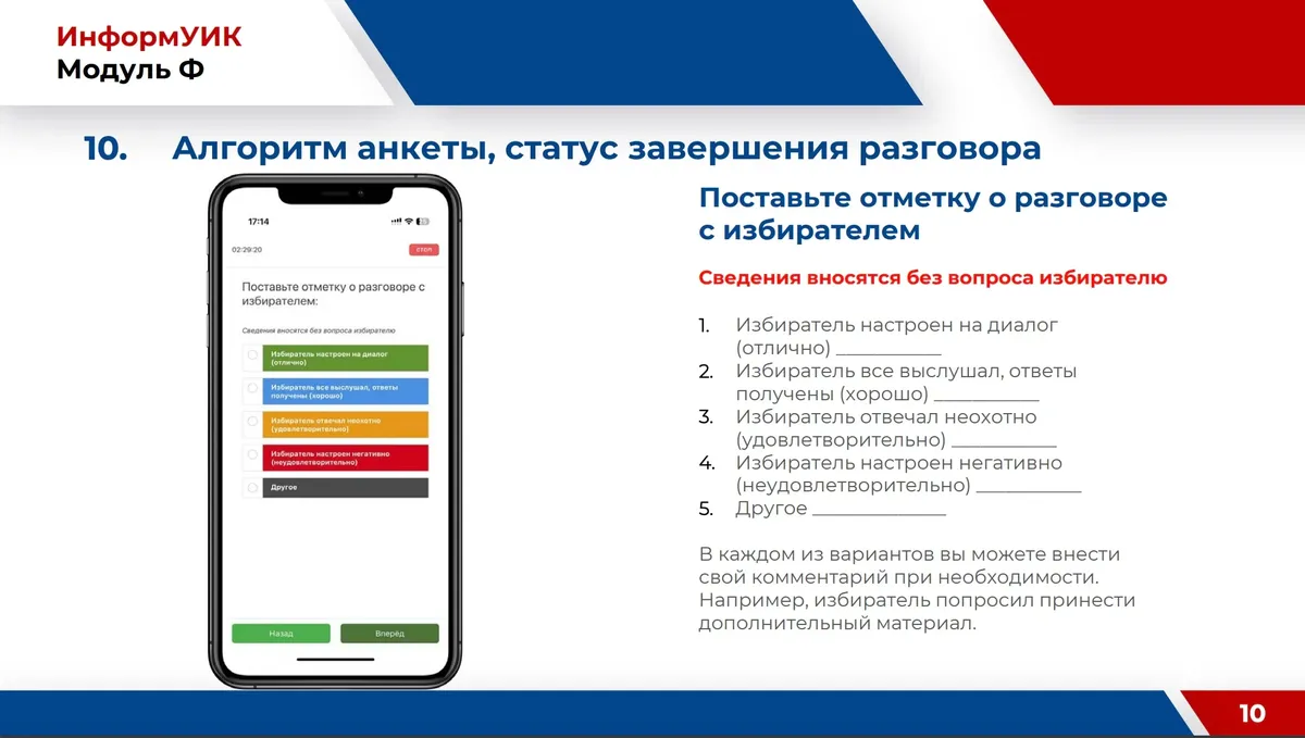Кроме того, заключительный пункт анкеты носит название «Отметка о разговоре с избирателем» и заполняется членами УИК без его участия.