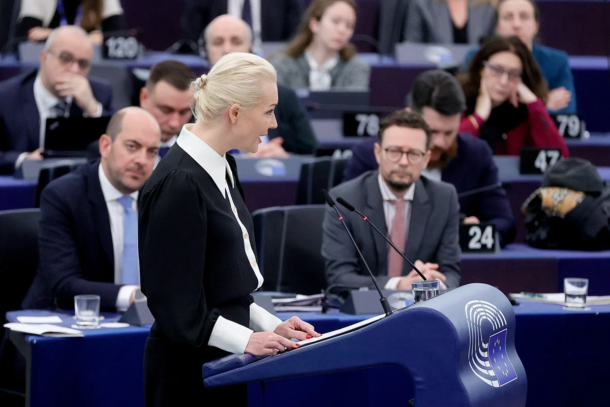 Жена убитого политика Алексея Навального Юлия сегодня, 28 февраля, выступила на пленарной сессии Европарламента в Страсбурге. Это вторая речь Юлии Навальной в органах власти Евросоюза после смерти ее мужа и третье международное выступление, считая ее обращение к Мюнхенской конференции по безопасности.